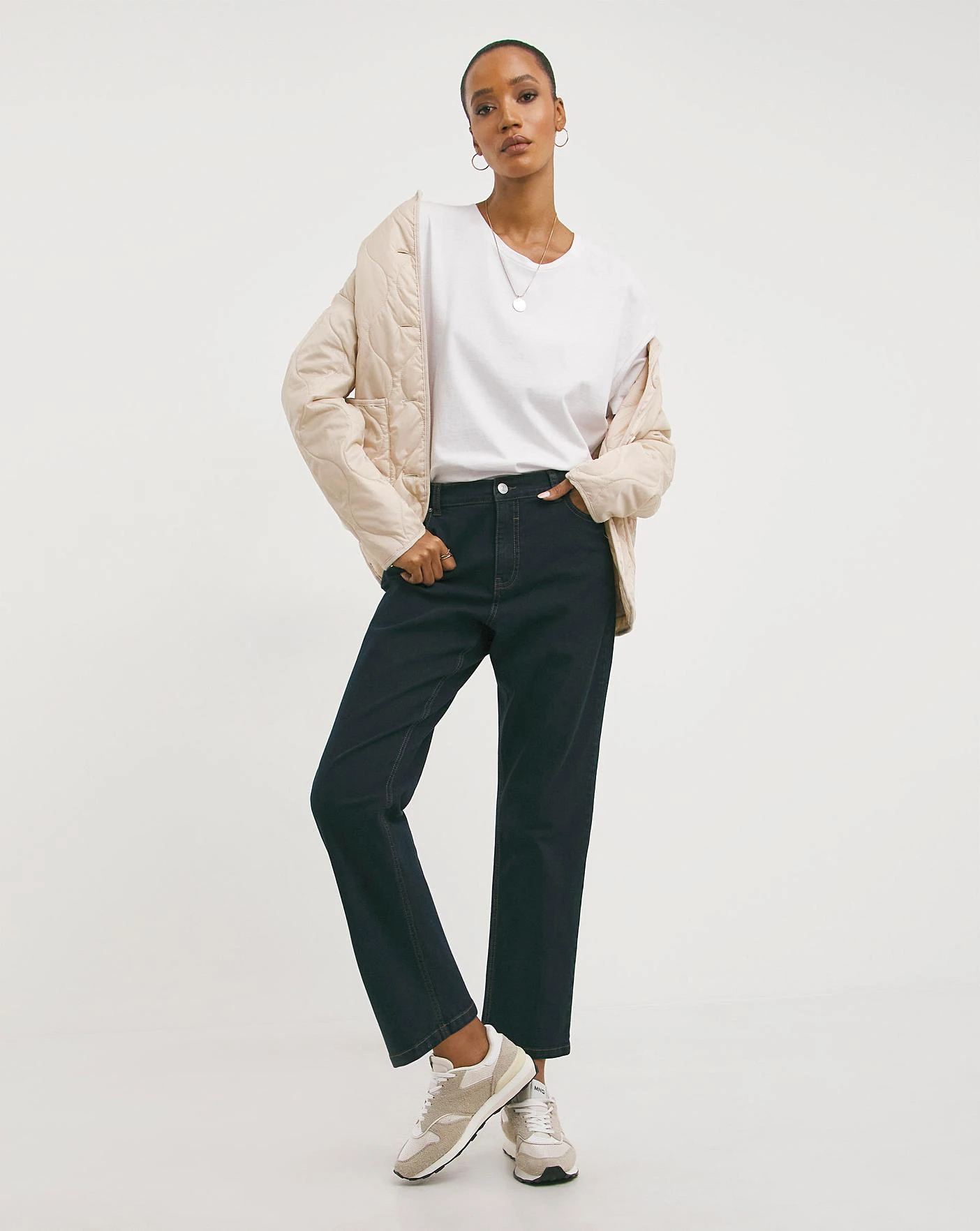 New and improved fit. Our 24/7 straight leg jean is the perfect everyday jean that has been reworked for the season. Updated washes and new fabric with improved stretch and movement, means this straight leg jean can be worn casually and comfortably throughout the day and dressed up to take you into the night. This style features hidden back waist elastication, teamed with a clever tummy tuck pocketing detail for ultimate comfort and fit. By choosing our cotton products, you’re supporting our Brand’s investment in Better Cotton’s mission. This product is sourced via a system of mass balance and therefore may not contain Better Cotton. bettercotton.org/learnmore