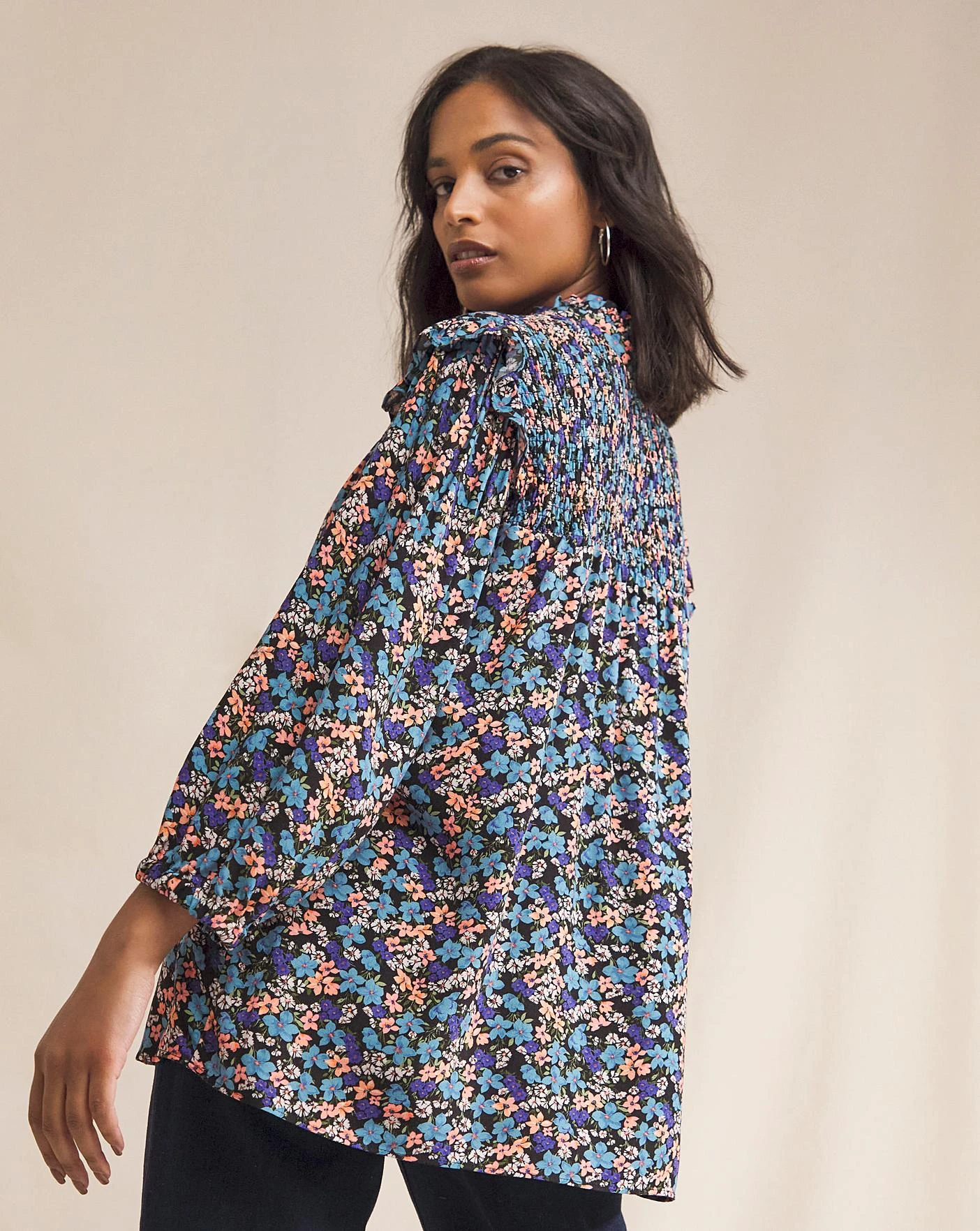 Alyssa is our ditsy floral blouse with features that make her feminine and fun. Frills fall over the shoulder and shirring on the front and back yoke adds extra detailing to this easy to wear piece. A small button front featuring our coconut buttons ensures she can be worn undone for a more casual look. You can also find Alyssa in another gorgeous floral print.