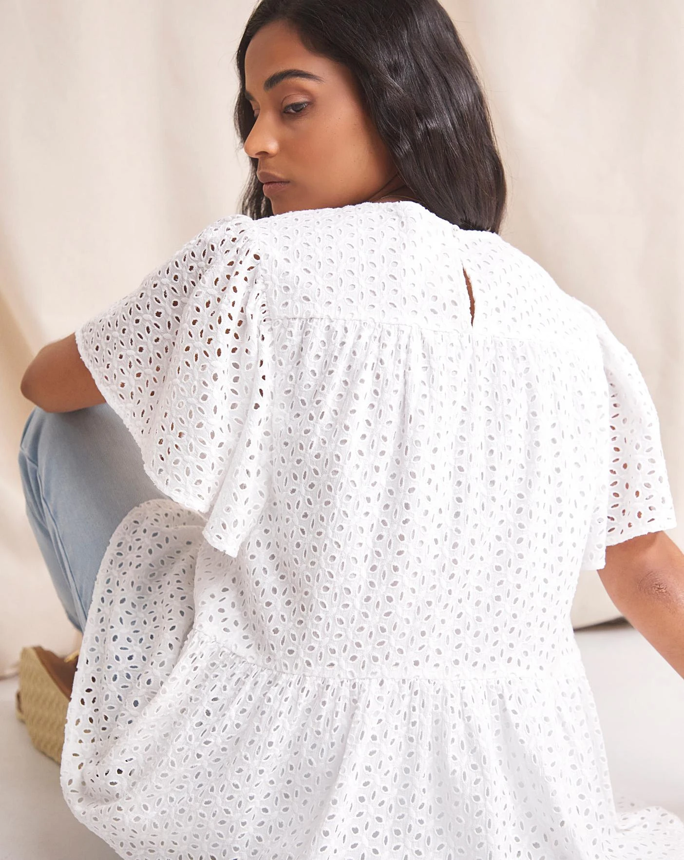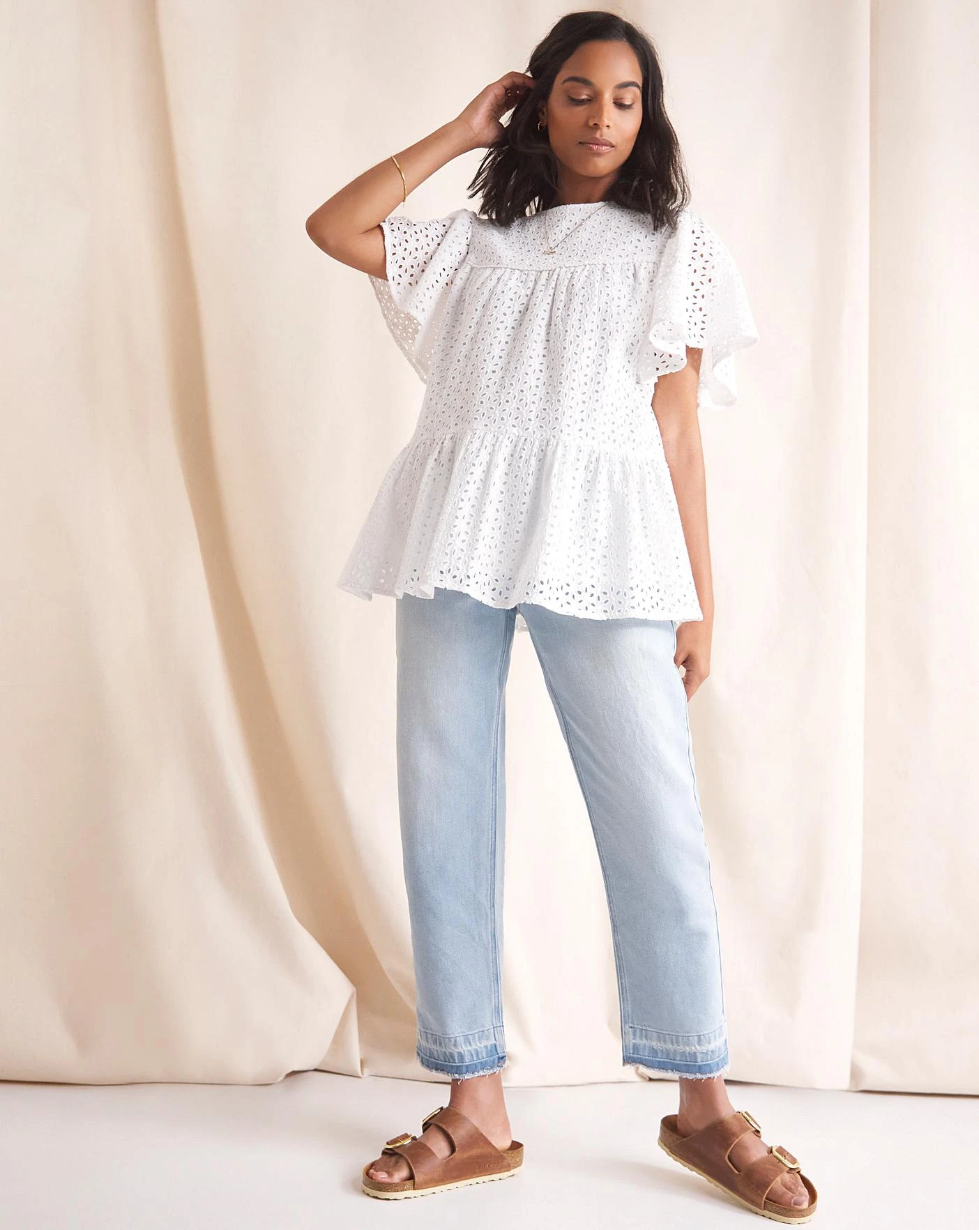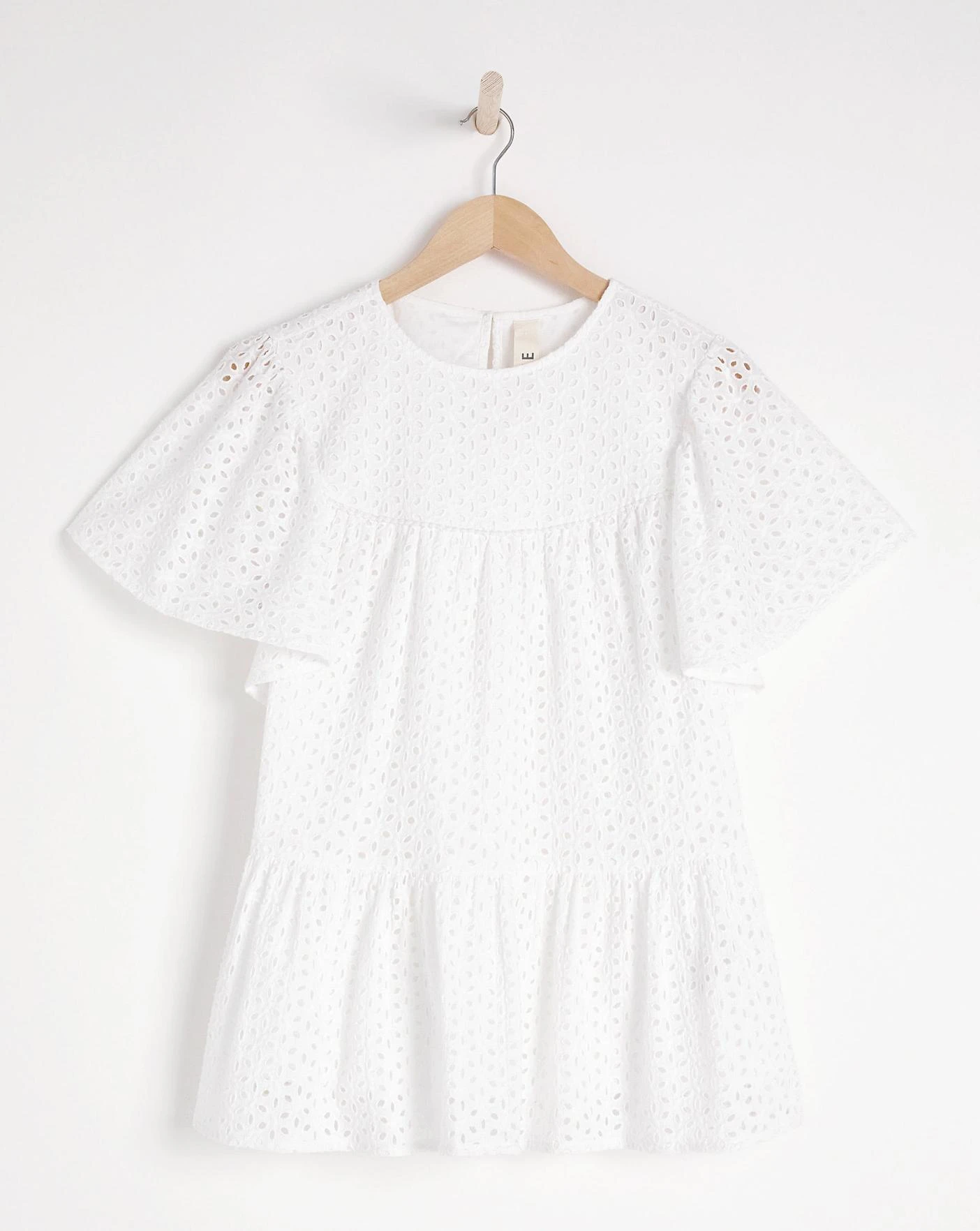 A perfect way to look polished on summer days, the Daphne broderie top will bring both elegance and versatility to your wardrobe. Her lightweight frame, delicate design and peplum smock, grant a subtle style statement. With flattering angel sleeves and a fully lined bodice, this premium style will complete your wardrobe this summer. Wear with the Anise Heather girlfriend jeans for a casual yet sophisticated look.