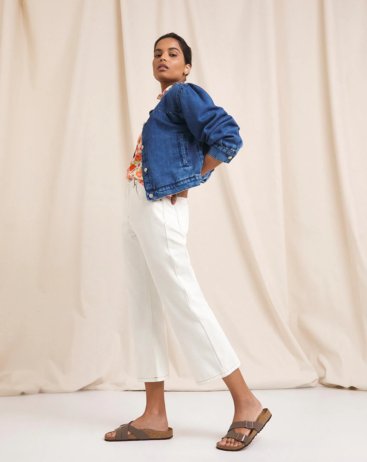 With her contemporary cropped cut the Lily flare jeans pair a stylish aesthetic with leisurely comfort. Her rigid denim and natural ecru colour works perfectly when styled with our bright floral Delphine top.