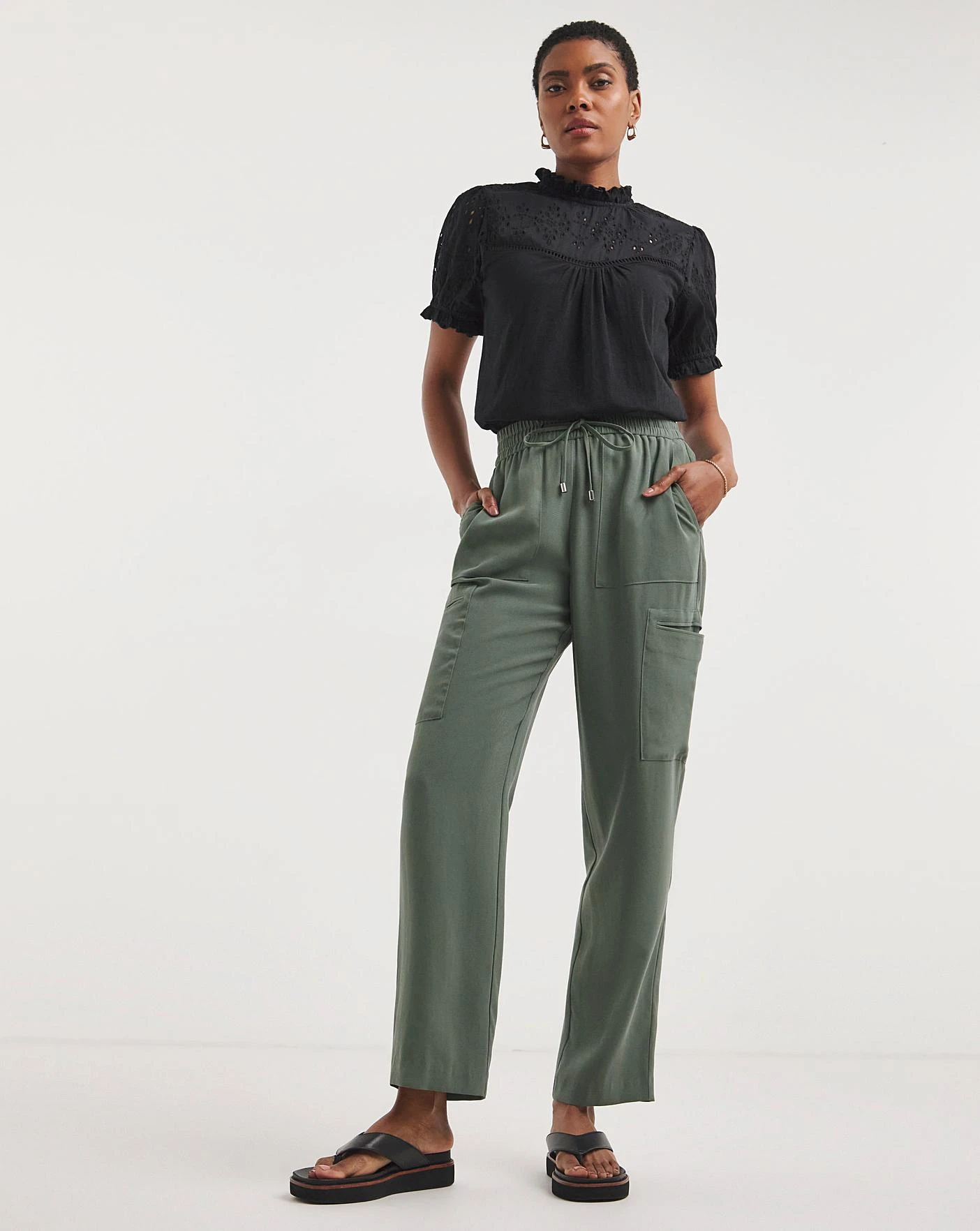 This stunning Yoke top is a great choice to dress up or down and is designed in a subtle textured fabric. It features a broderie yoke, with detailing to the sleeve.