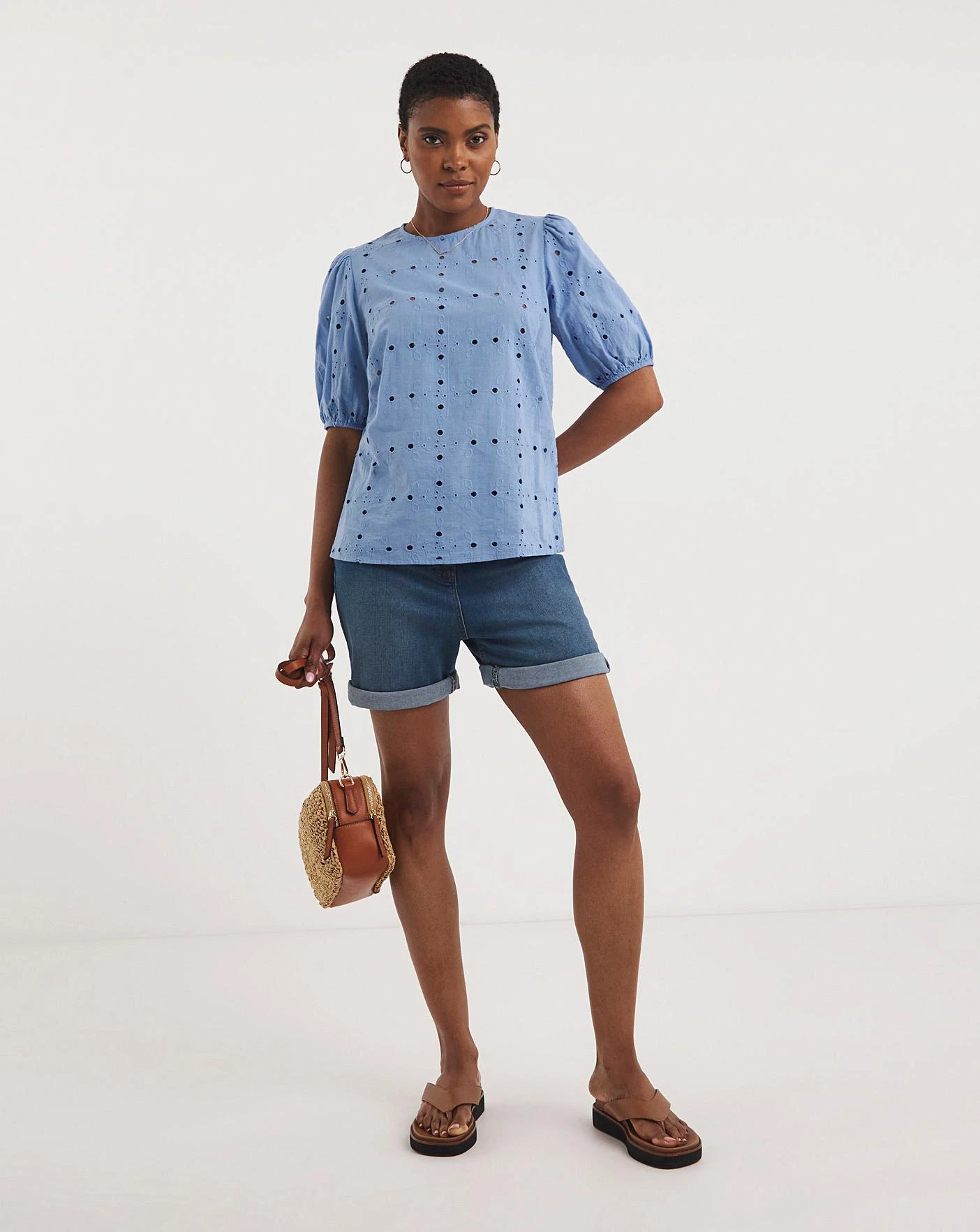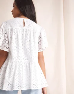 Our puff sleeve broderie top is a great daytime piece that can be paired easily with shorts or jeans.