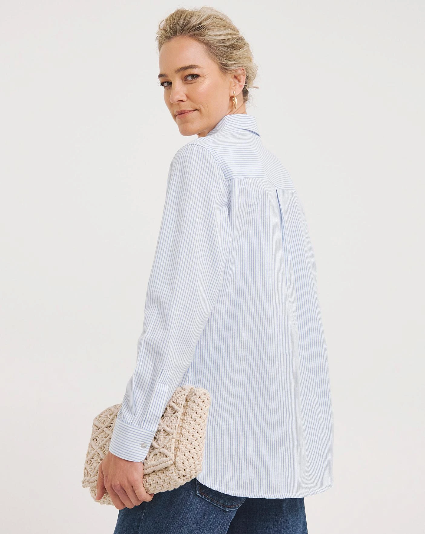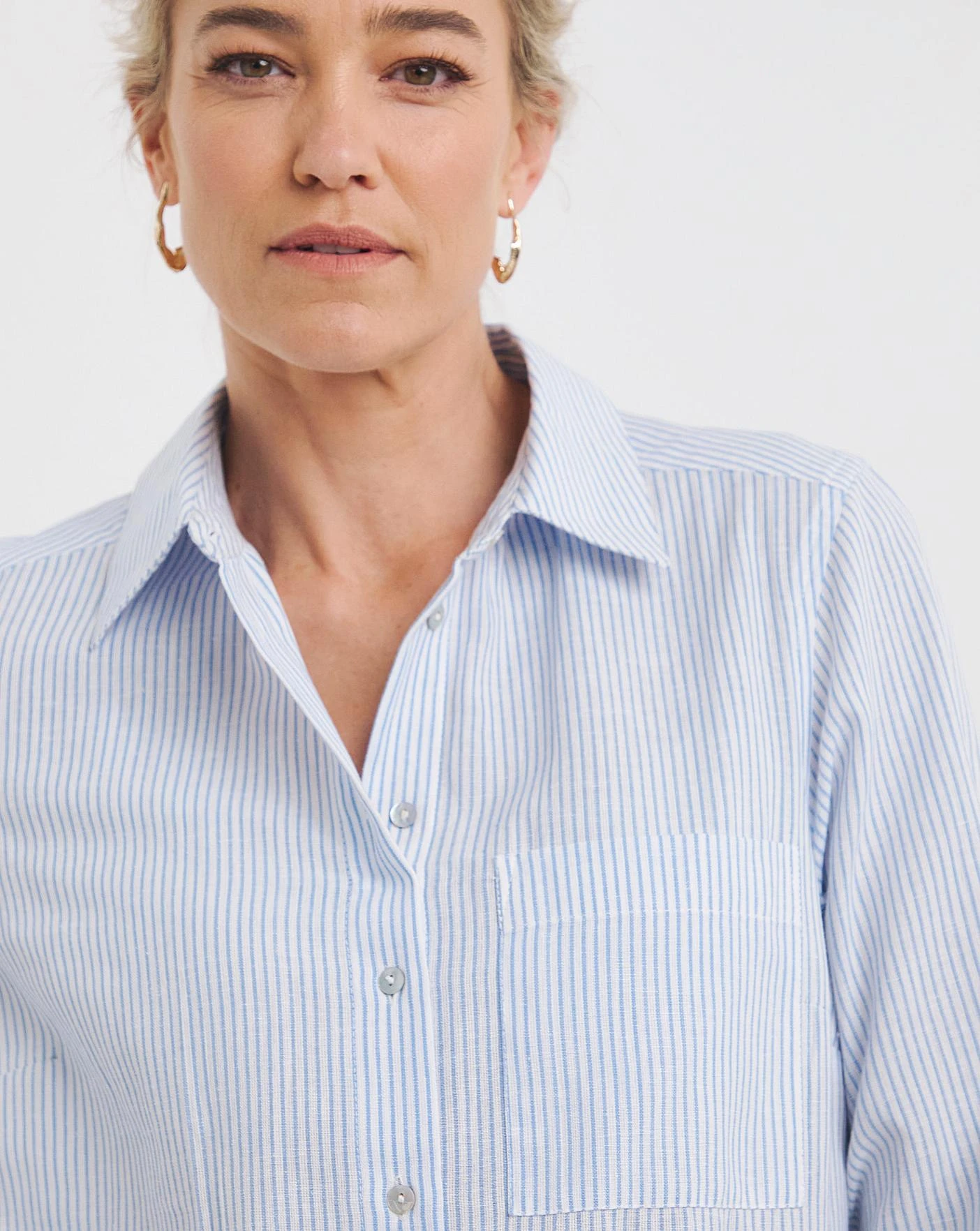 For a smart-casual look the long sleeved linen shirt can be paired perfectly with jeans or casual trousers. Please note that this shirt comes in a relaxed fit so that you can stick to your usual size.