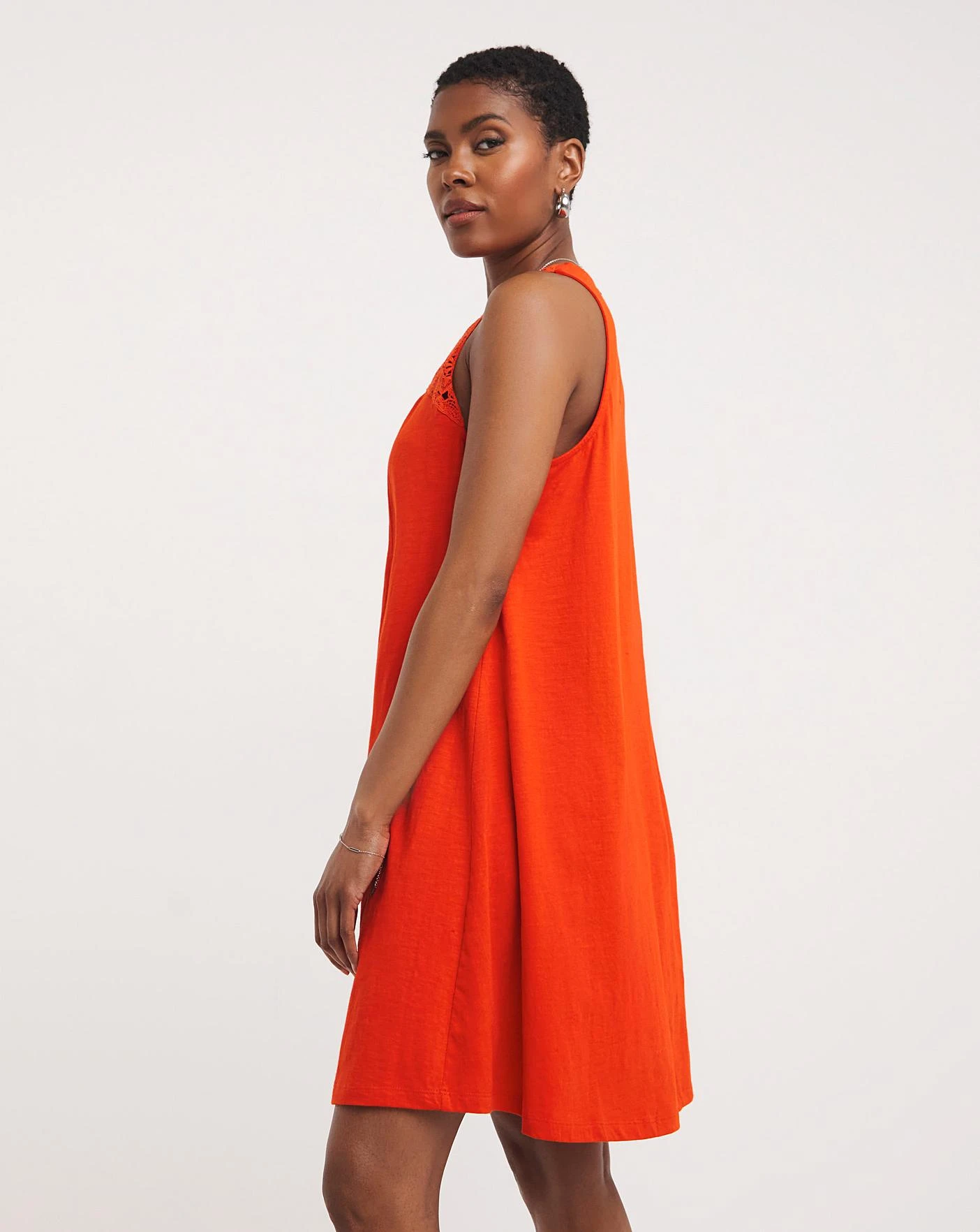 This gorgeous crochet trim swing dress, is crafted from our comfortable cotton. Perfect for the summer, this pretty dress features a loose, relaxed shape.