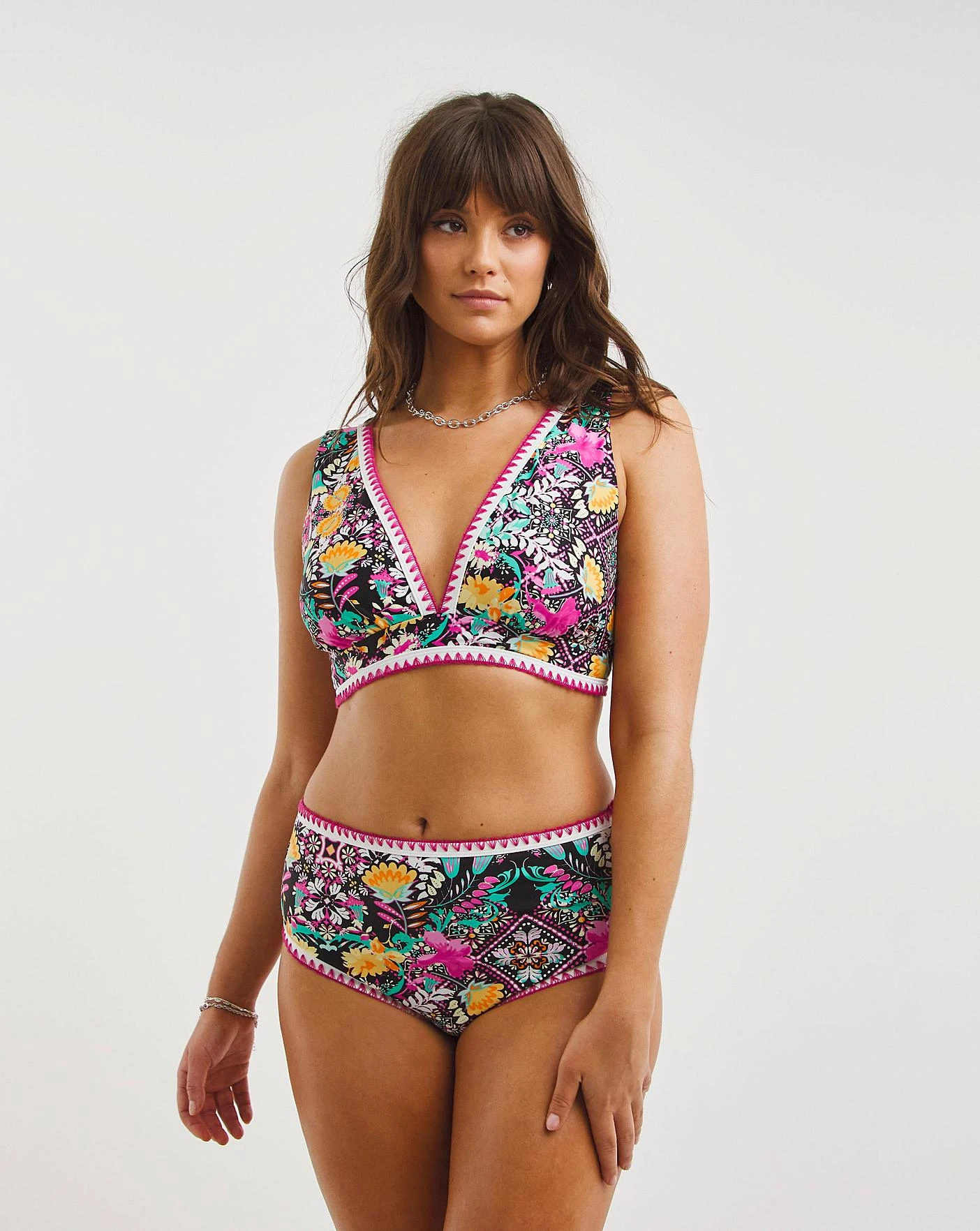 The Figleaves Frida Full Brief tummy control bikini bottom combines this season’s updated colourway to our most popular print with a new shape; the high leg and high waist brief. It’s a shape that’s ultra flattering and works for all shapes and sizes.