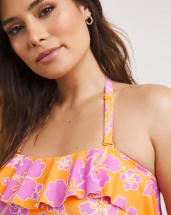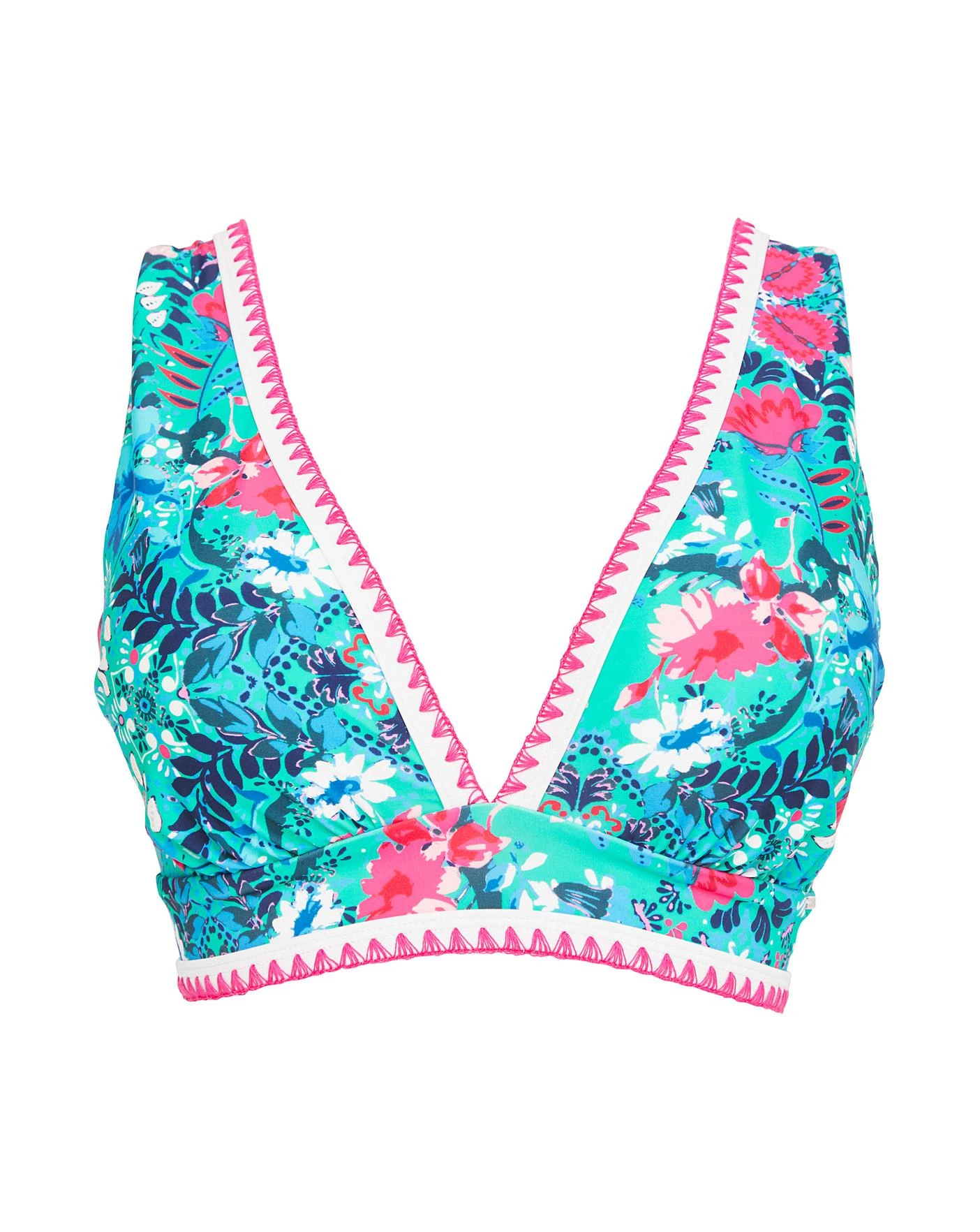 Fusing vivid florals with cool crochet trims, the Figleaves Frida Soft Plunge Bikini Top is guaranteed to liven up the beach. Perfect for your next sunshine adventure, this bikini top features supportive straps with a thicker high apex detailing. Non wired but removable pads included. Pair up with our matching bikini bottoms.