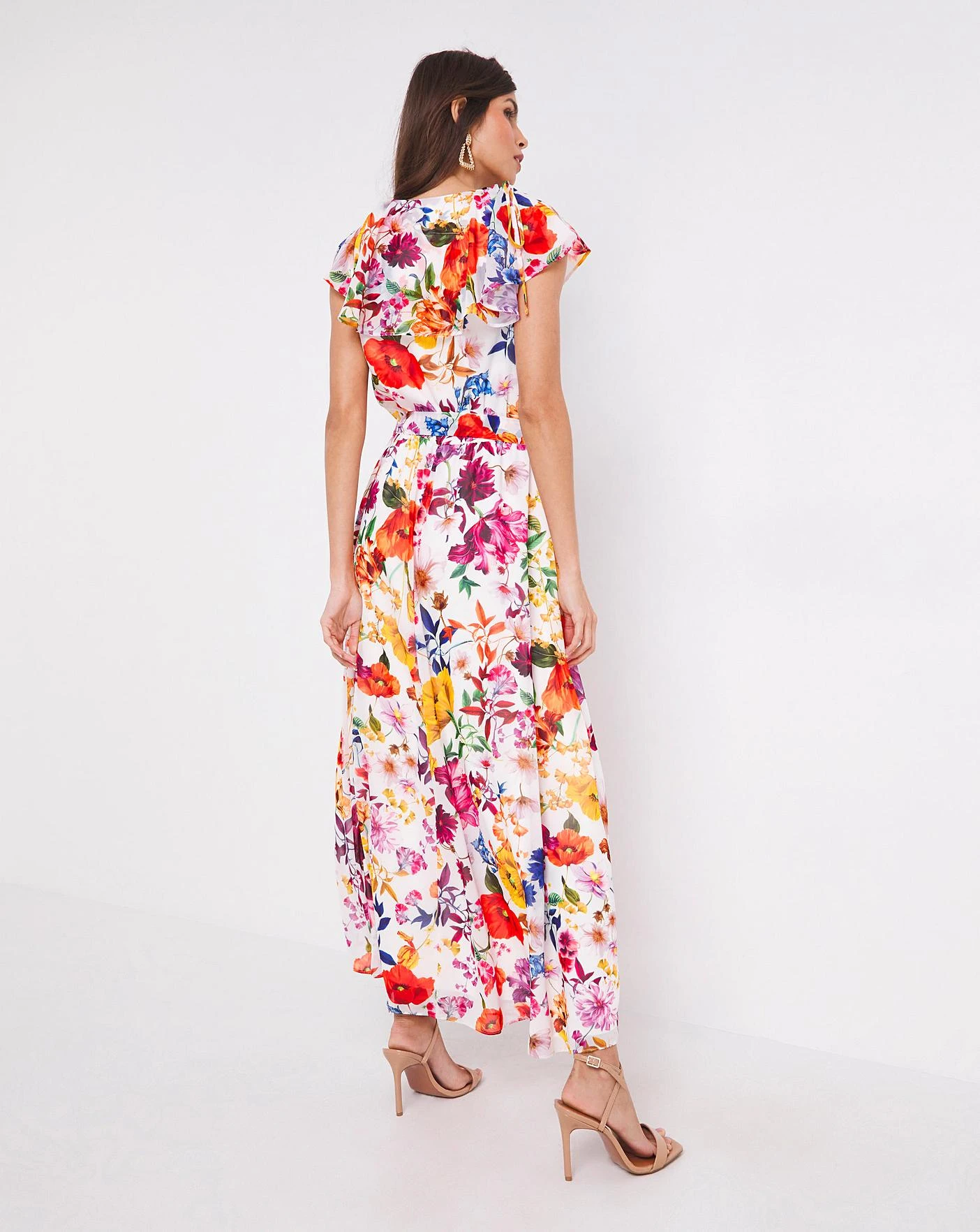 This flattering Joanna Hope floral print dress features a waterfall frill neckline with wrap detail and elasticated waist with matching belt. Dress comes lined.