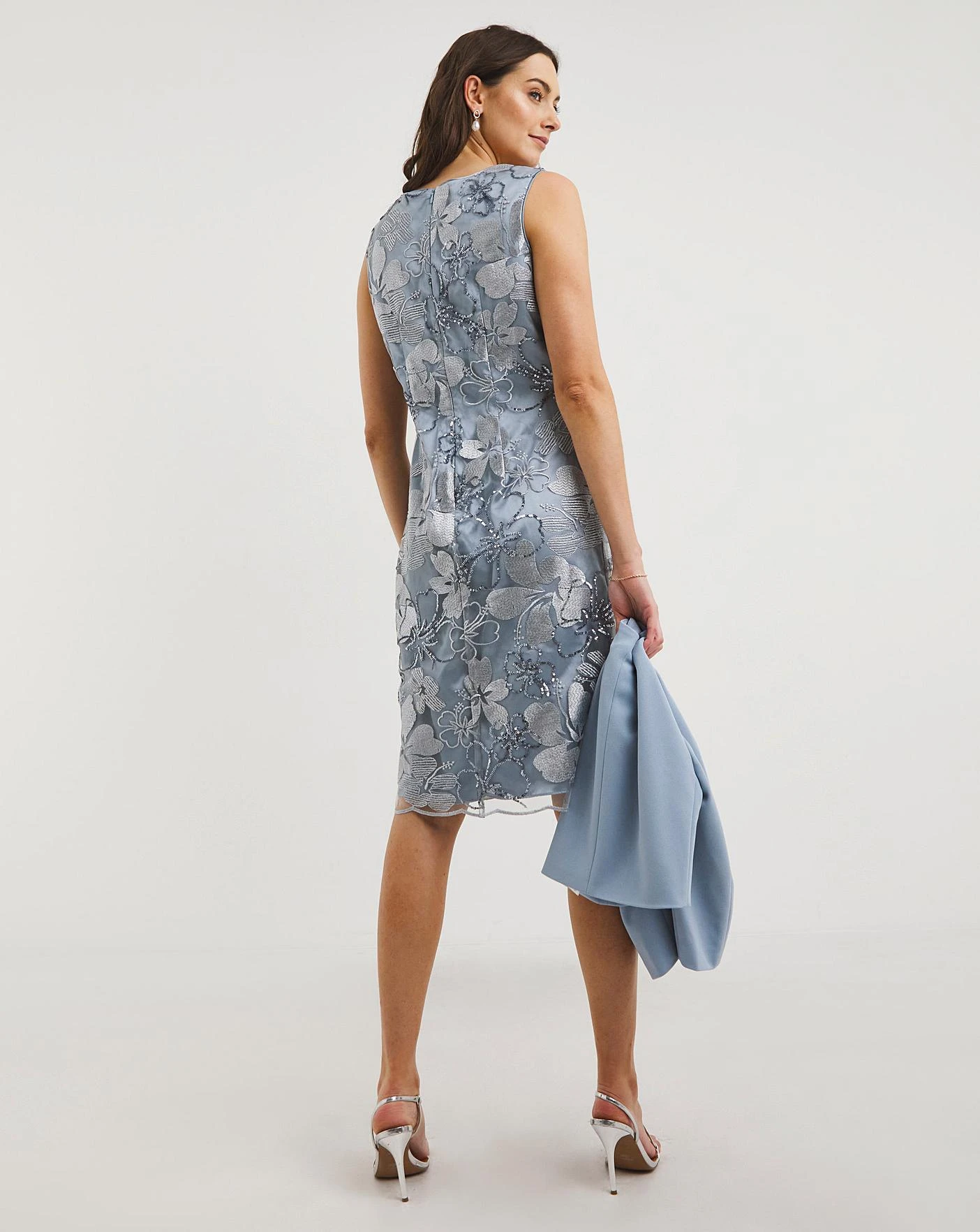 Perfect for mother of the bride, this elegant Joanna Hope dress and jacket set is crafted from intricate beading and sequin detailing. In a luxurious fabric, the matching cropped jacket features scallop detailing and 3/4 length sleeves, to give a clean-cut finish. In a slimming shift shape, this set feels effortless. Complete with a centre back concealed zip, hook and eye. Both the dress and jacket are lined.