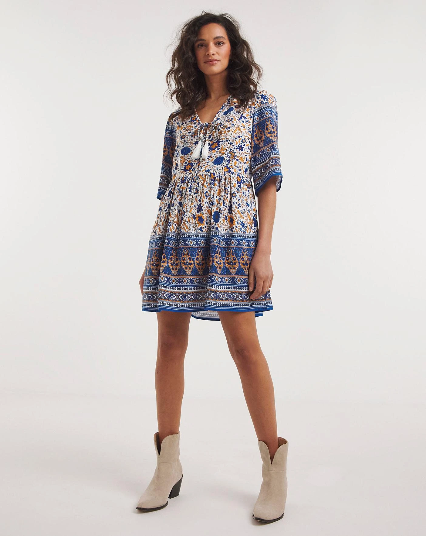We love boho fashion here at Joe Browns, so we created this tunic to show off our favourite style details. From the gorgeous print and border detail to the lace detailing and tassel trims, this tunic is simply remarkable. In a flattering relaxed fit, it’ll fall beautifully on your figure too, creating a look that you’ll love to flaunt.