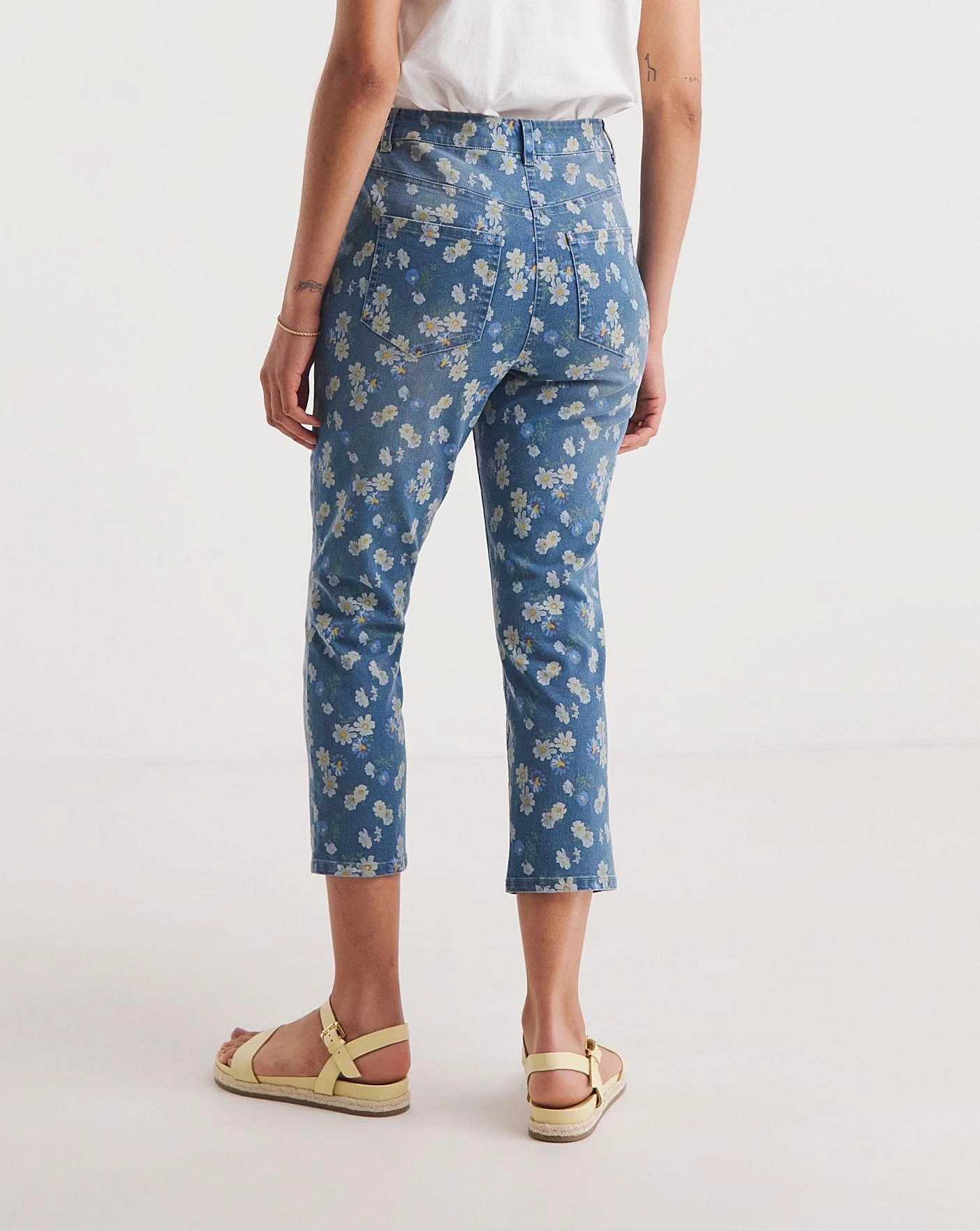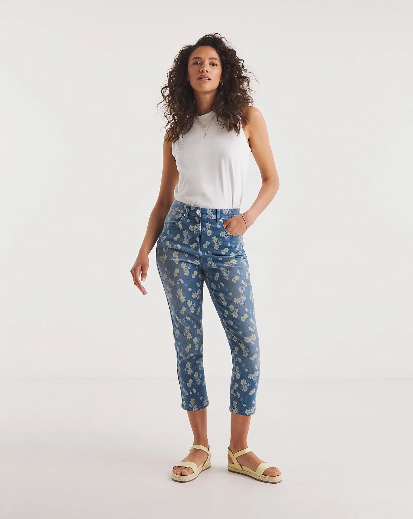 Try something a little different this summer with these cropped denim jeans. Not only are these capri-style jeans a great length for keeping you cool and comfortable in the sun, but the cute daisy print makes them even more perfect for the season. We love pairing our cropped jeans with a simple blouse or top to let the pattern really stand out.