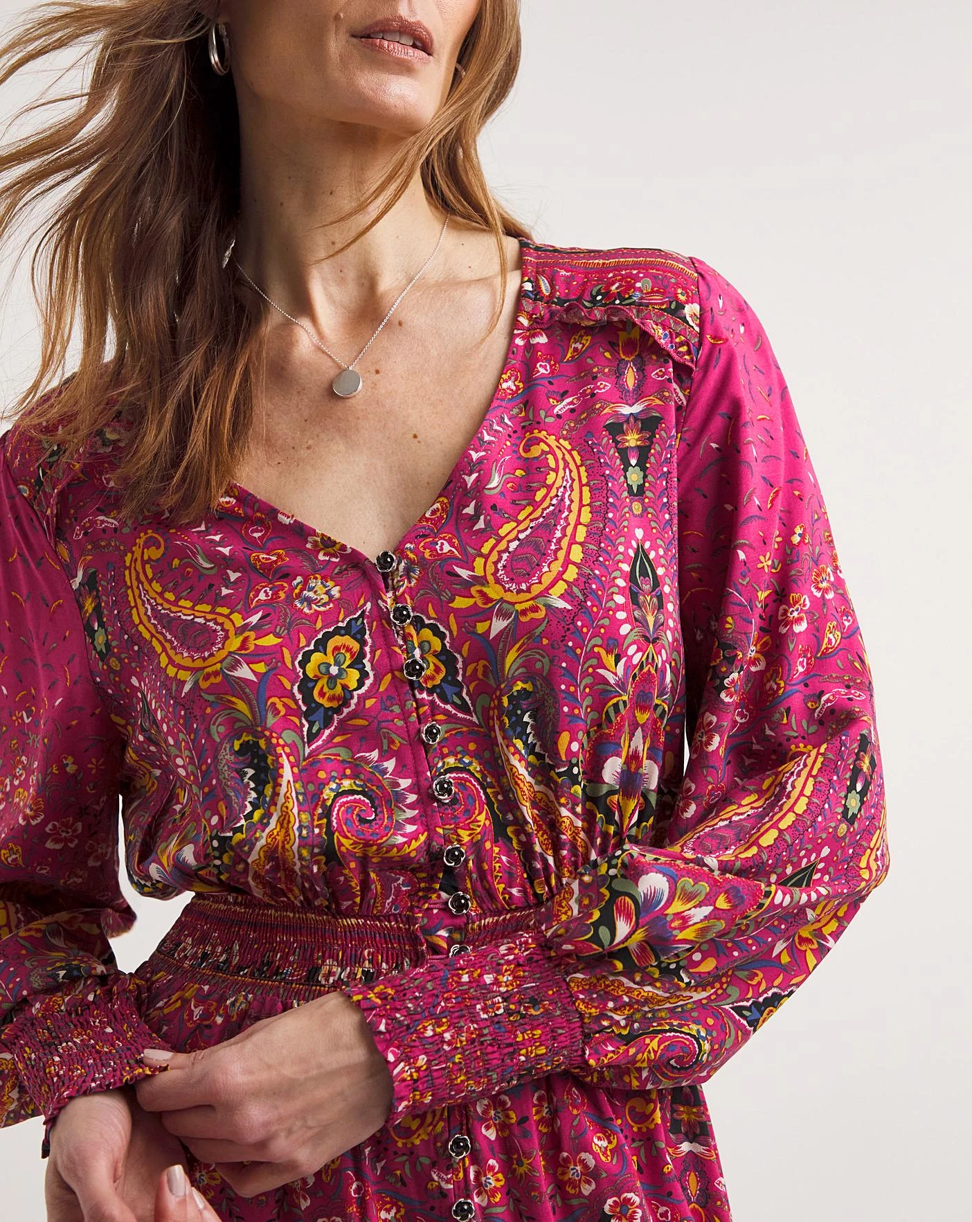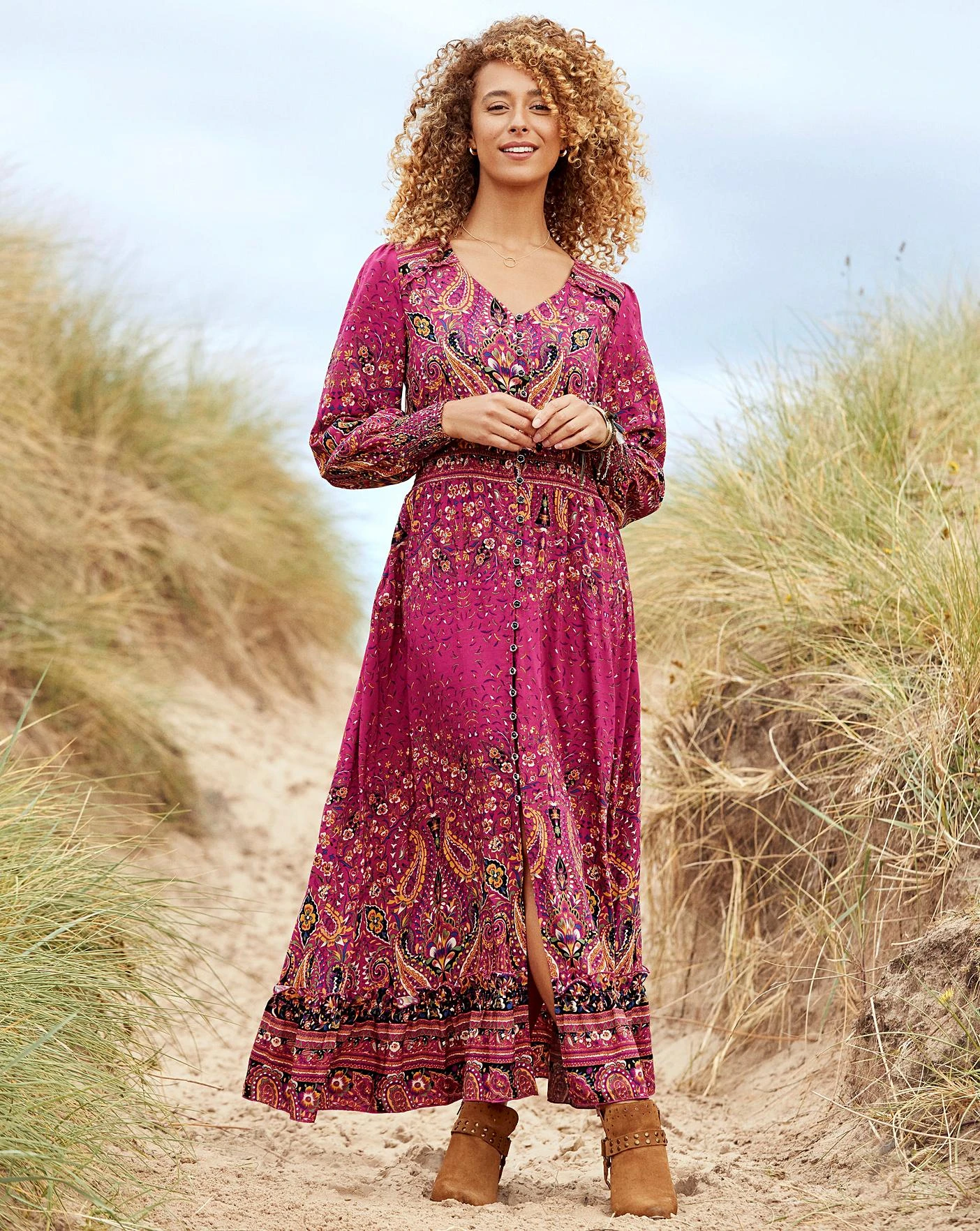 This paisley maxi dress is such a bold, boho vibe, with the paisley design, shirring and border print hemline. We love how its striking pink shade will add a bright touch to your seasonal style, too. The perfect partner for brogues or boots, it’s just the thing to elevate your everyday outfits, so you can step out feeling fantastic.