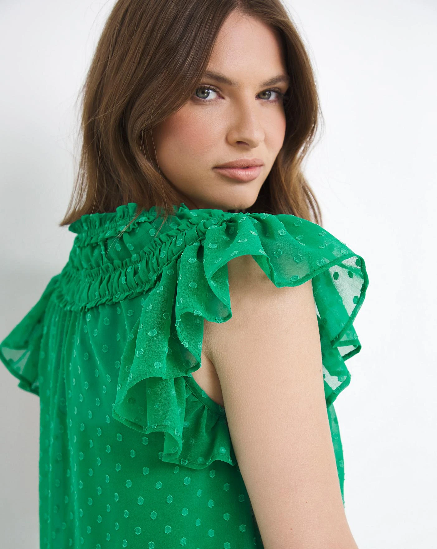 Vibrant frill sleeve button through sheer blouse with matching cami underneath. Wear 2 ways, pair with the matching skirt for an effortless look or pair with jeans for a more casual day to day look.