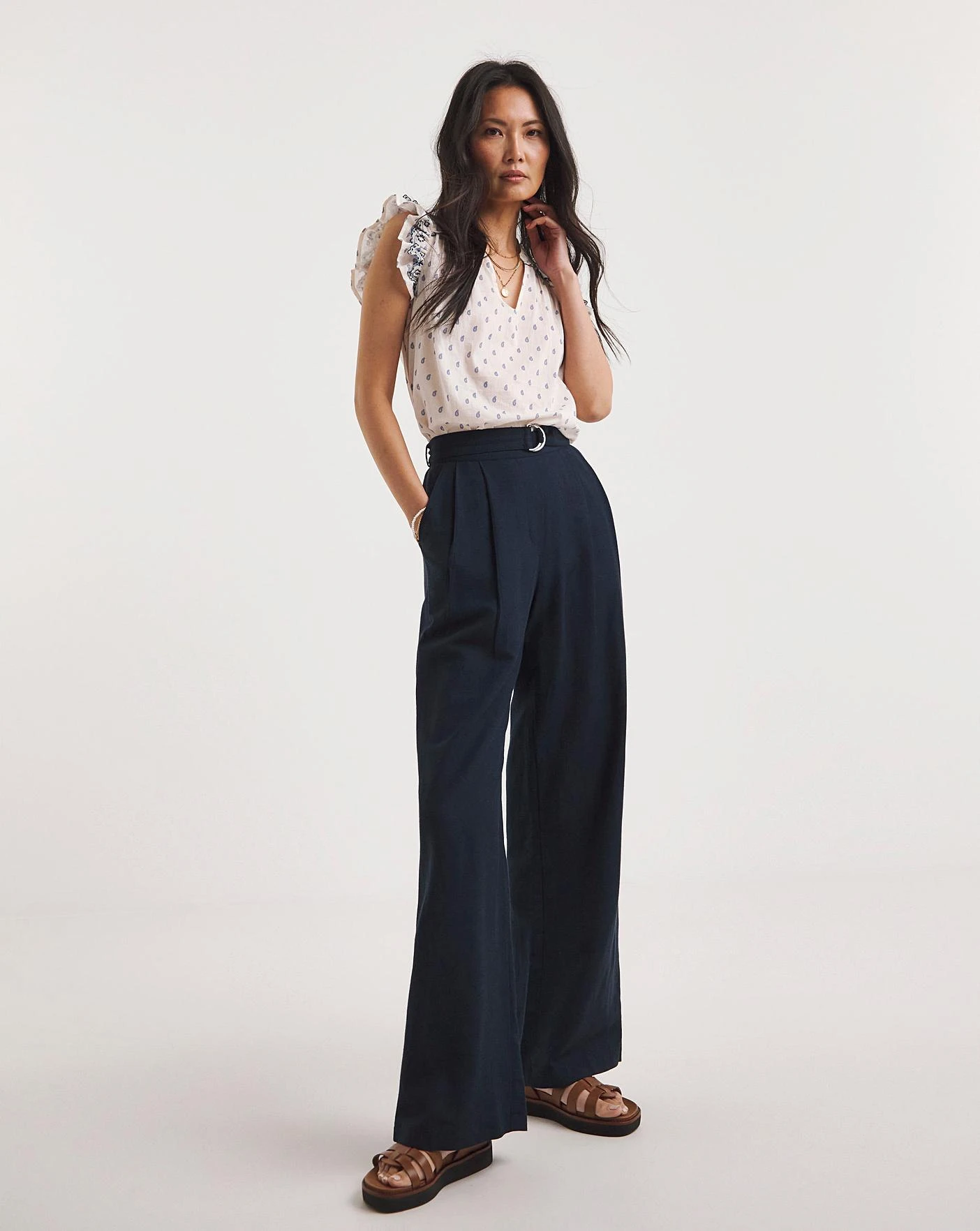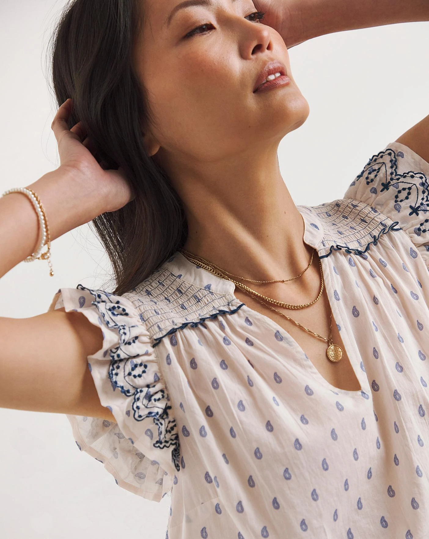 Frill sleeve blouse with shirring on the shoulder. Designed in a paisley print on a super lightweight cotton fabric.