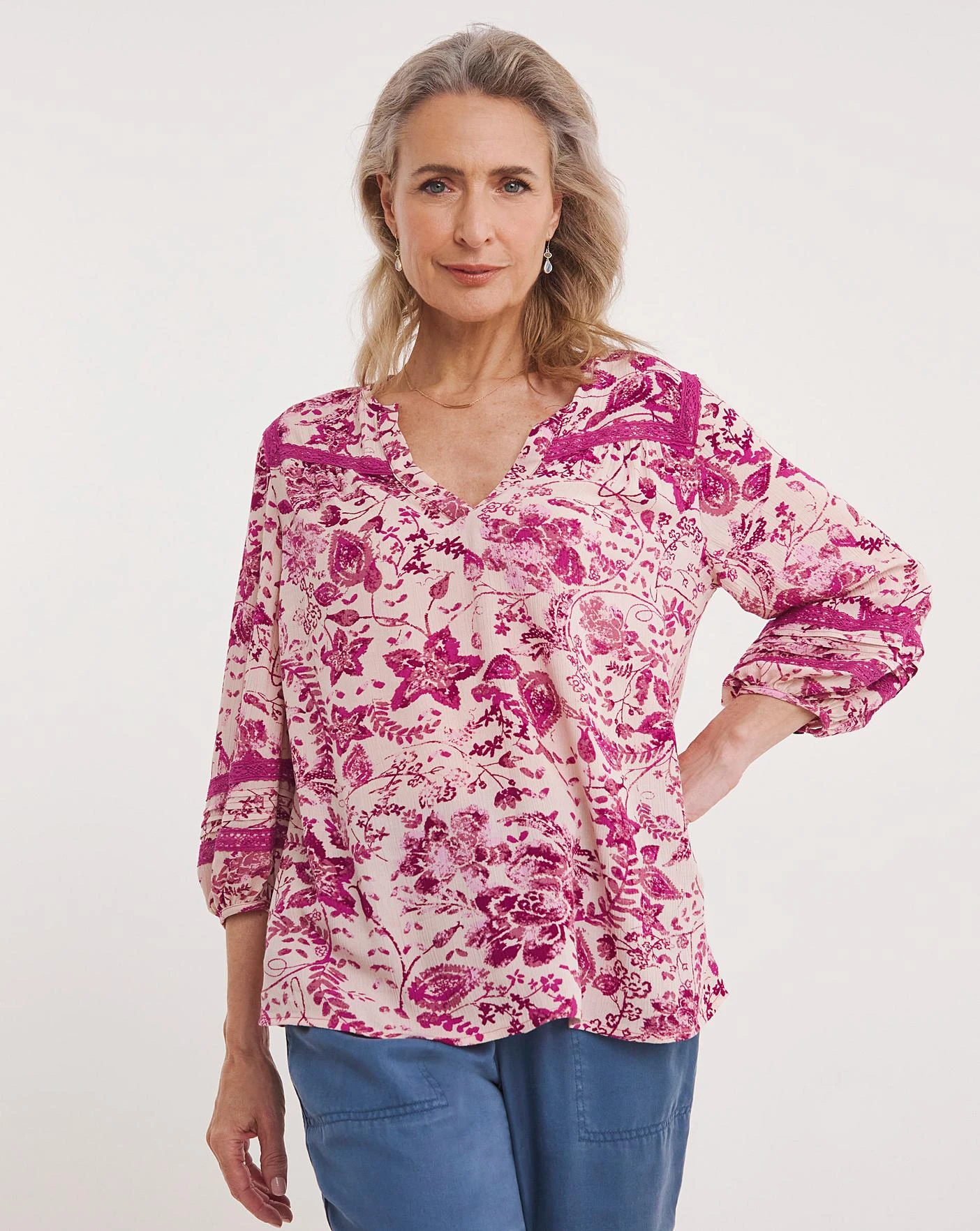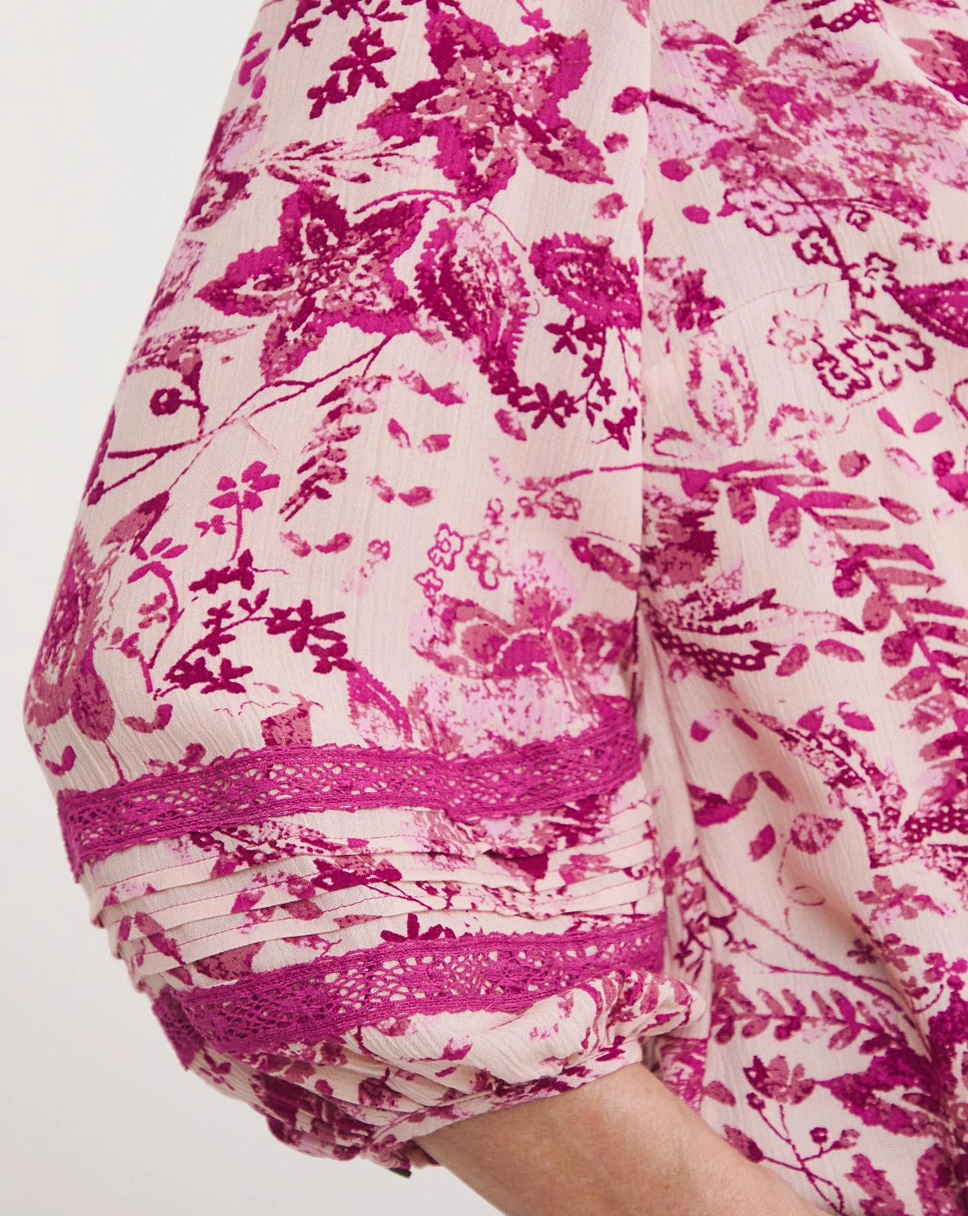 A floral blouse is the perfect item to add to your wardrobe, featuring pretty lace details. Made from a soft viscose crinkle fabric.