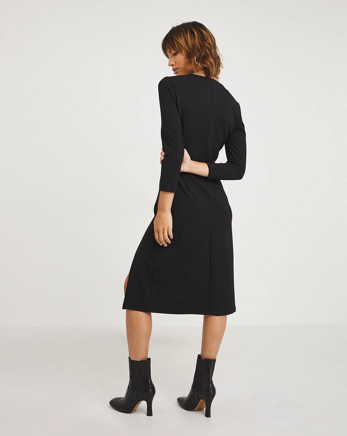 Our gorgeous sophisticated Marylin body skimming dress has a flattering silhouette to take you seamlessly from desk to dinner. Featuring a modern square neckline to elevate the look and a leg slit adding detail. Crafted from a scuba crepe jersey with stretch, the fit will cinch you in whilst allowing you to remain comfortable throughout.