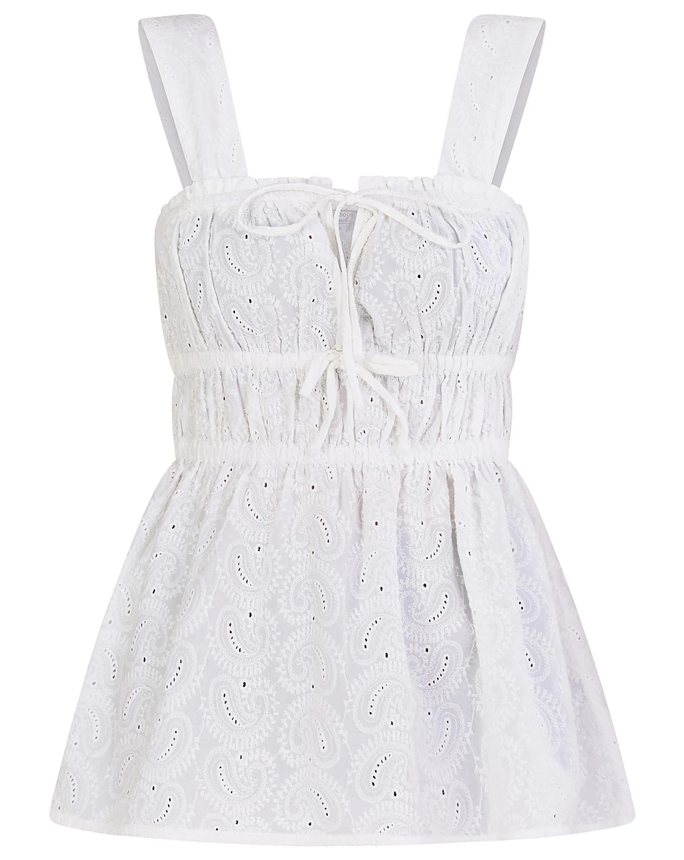 - Whether you’re enjoying an alfresco afternoon lunch or strolling the historic streets abroad, we see this broderie cami top in our weekly rotation on sunny days. The ultimate flattering fit is built with elasticated stitching through the waist, with a peplum hem below that flares effortlessly over the hips. Finished with comfortable wide straps and a tie neck detail. Just one of our steps towards a future for sustainable fashion, we introduce S.E.W: our commitment to using more eco-conscious materials in our ranges. This capsule collection is created using fabrics that are both kinder to the planet and have a reduced environmental impact. You’ll see blends of organic and better-sourced cotton, viscose from more responsibly grown forests and recycled polyesters made from post-consumer waste.