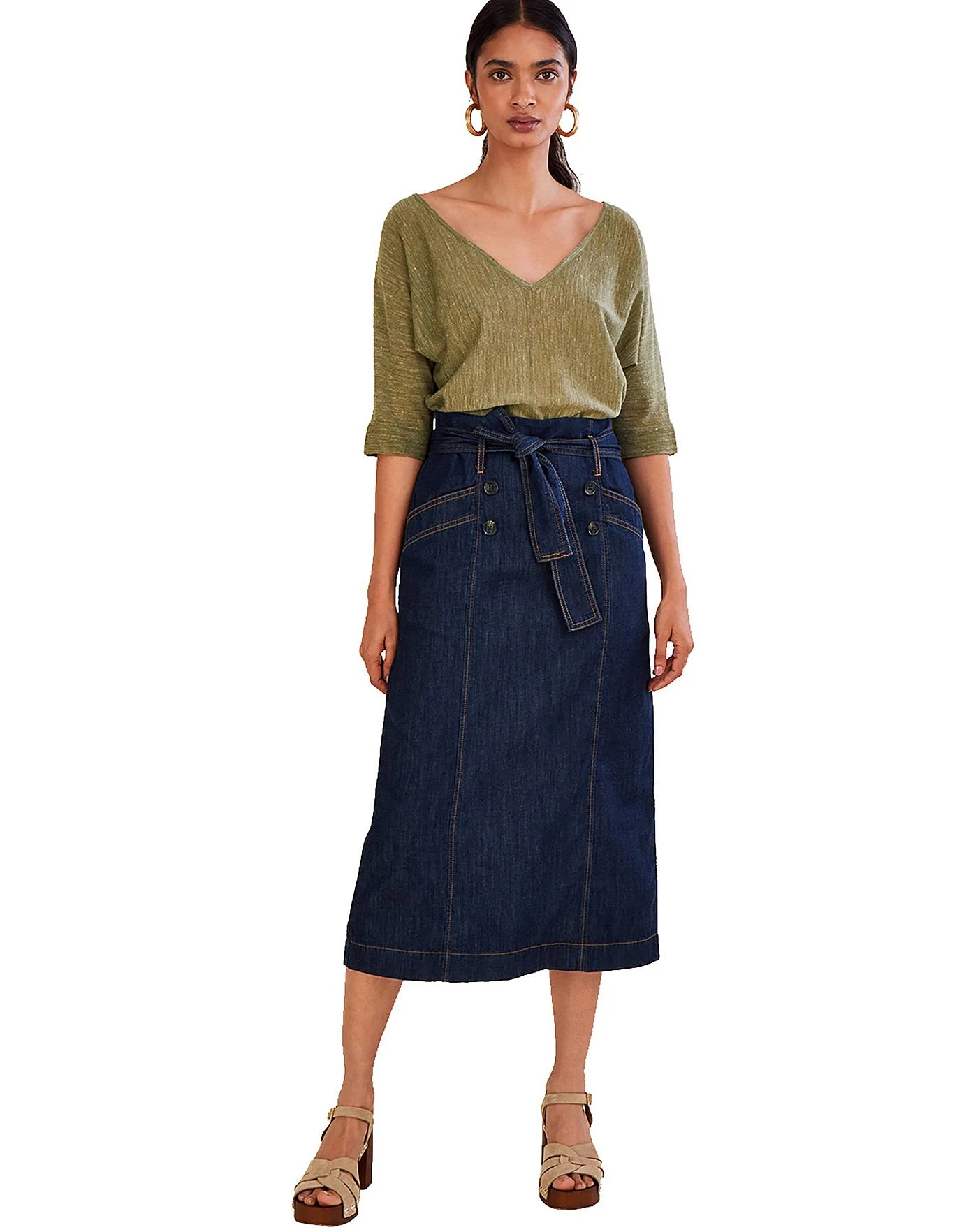 - Monsoon Denim Belted Button Front Skirt