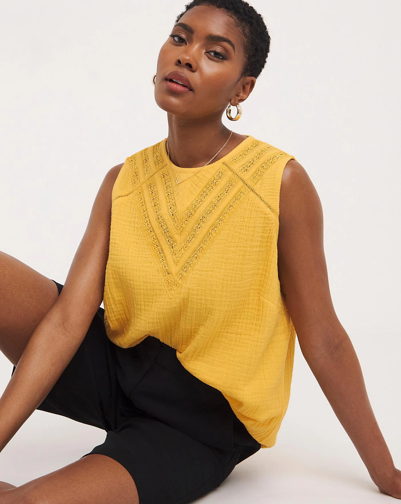 Our cheesecloth lace insert vest is a great daytime piece that can be paired easily with jeans or shorts.