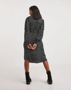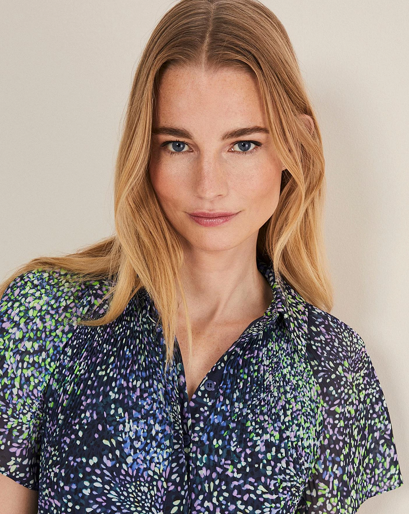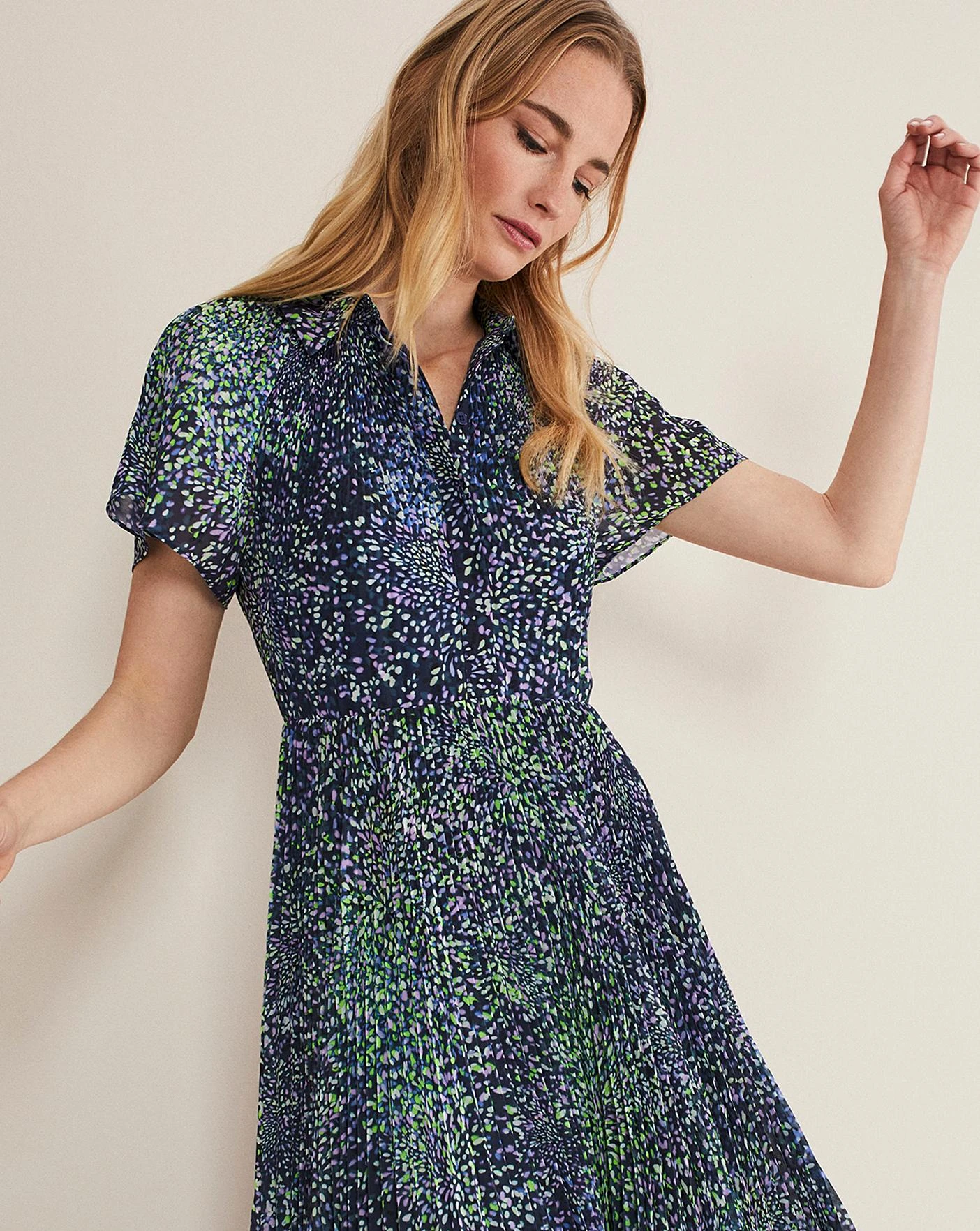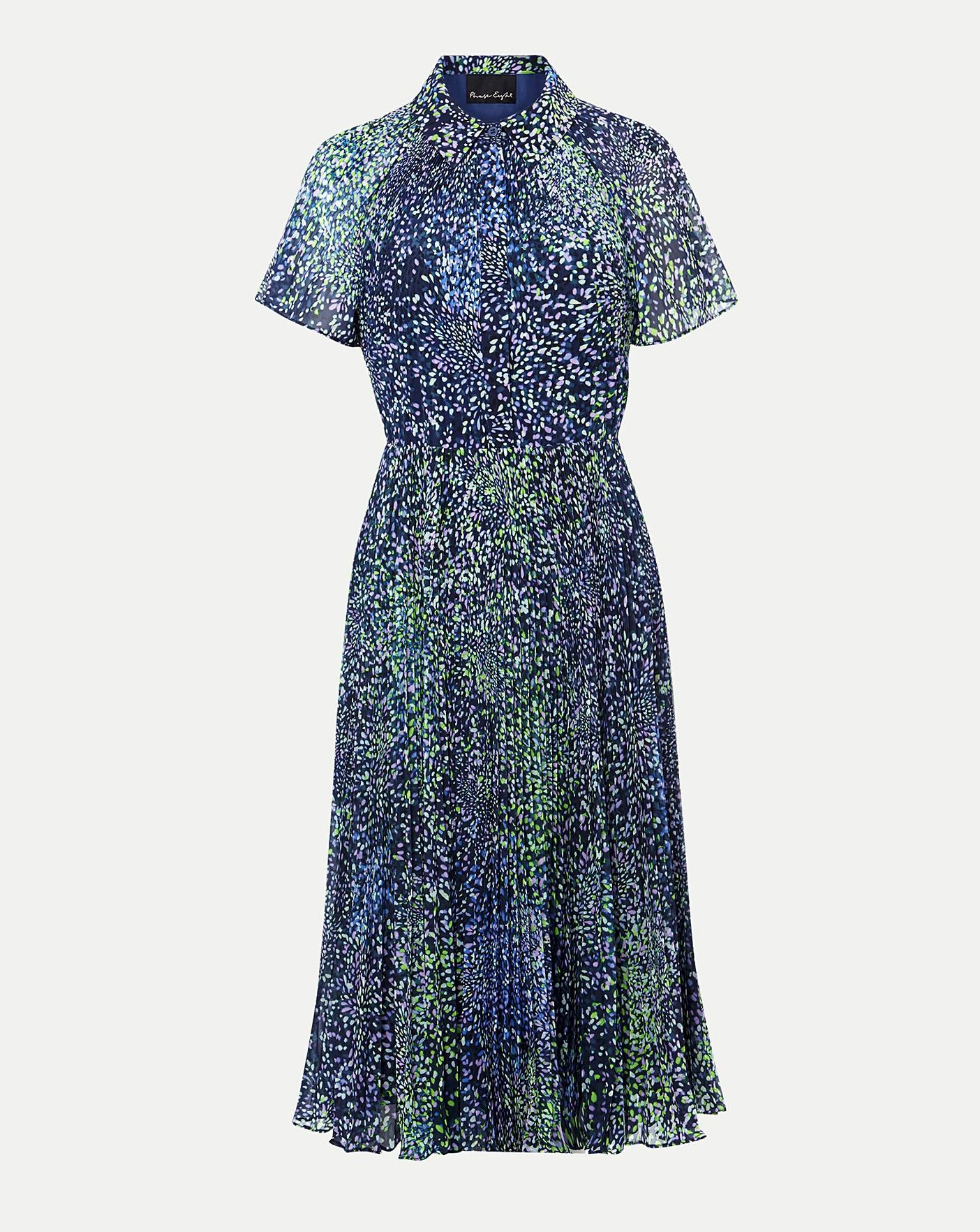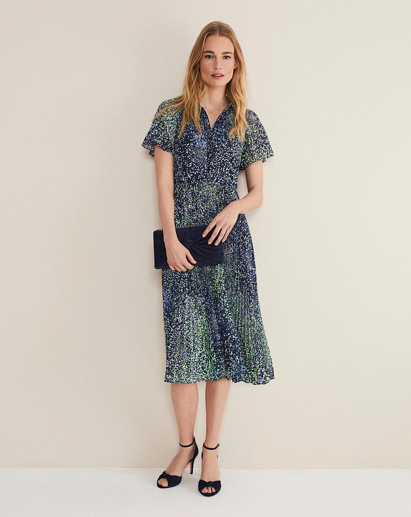 The perfect dress for your next occasion. Our Amelia Shirt Dress is deisgned with a colourful ditsy print and features fluttery sleeves and a flowing pleated skirt. We’ve styled ours with a navy clutch bag and heels ready for our next special event.