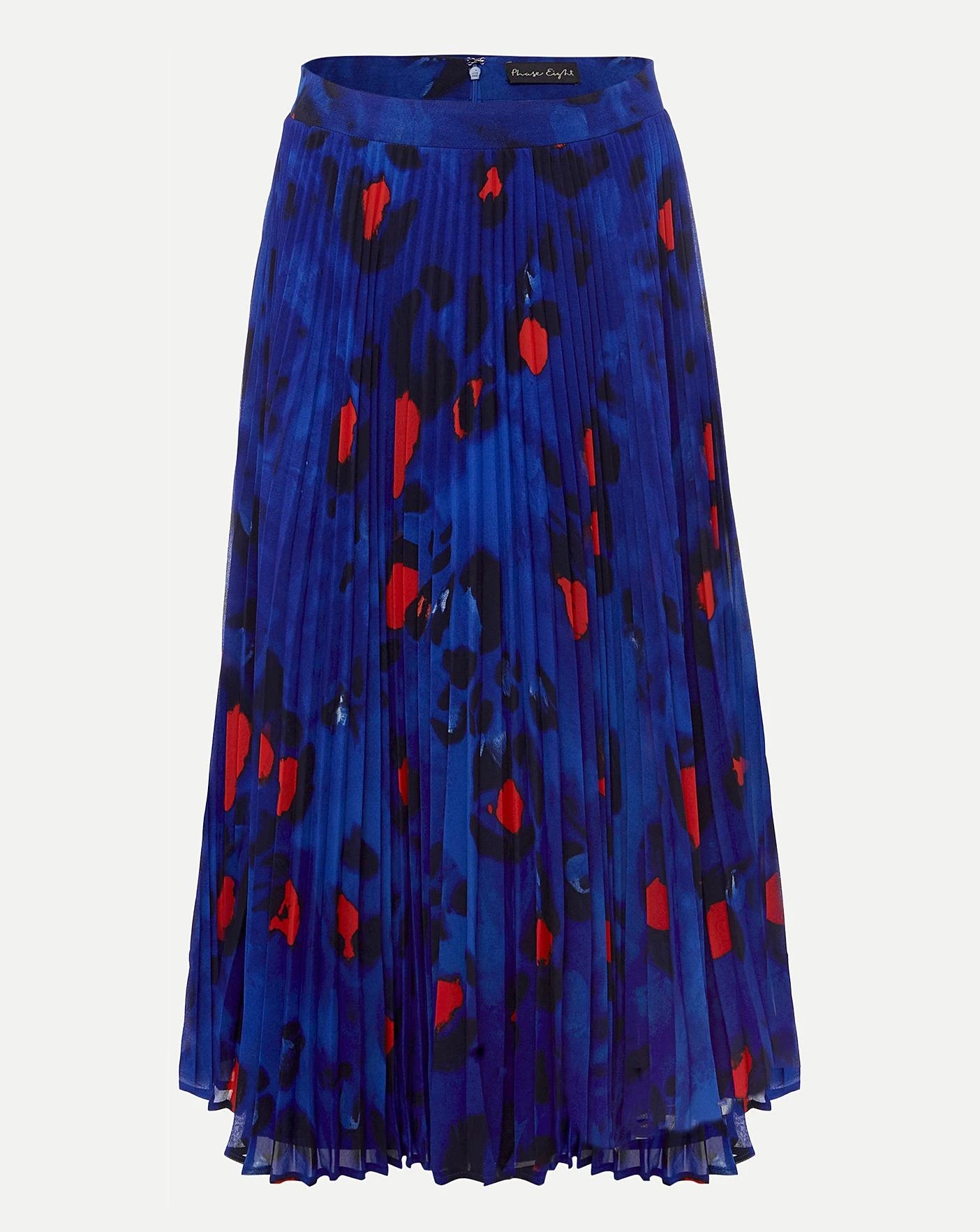 This season’s statement skirt. Designed in a cobalt shade with an on trend animal print our clarisse skirt features a full pleated silhoutte that creates beautiful movement as you walk. We wear ours with a cobalt cami for a stunning evening look. This style is responsibly sourced. This style has been made from recycled polyester giving materials that would have endedd up in landfill a new lease of life.