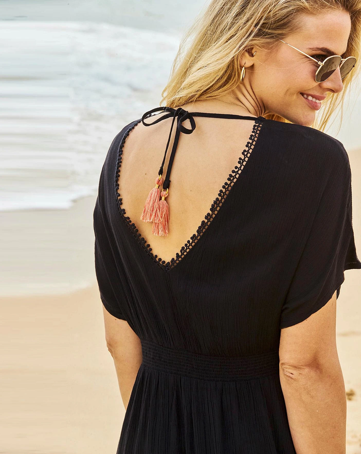 Your new holiday must-have kaftan with gorgeous embroidery, the ultimate summer cover-up. On-trend embroidery. Cool enough for poolside covered up enough for lunch. Cinched waist: super flattering.Throw on over your swimsuit. Dress up with wedges and a straw hat. Length: 94cms.