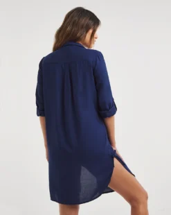 Your new holiday must-have kaftan with gorgeous embellished neckline. Sheer lightweight fabric to keep you cool. In an all-over cobalt blue leopard print, a timeless classic. Throw it over the matching swimsuit. Accessorise with a straw bag. Length: 85cms.