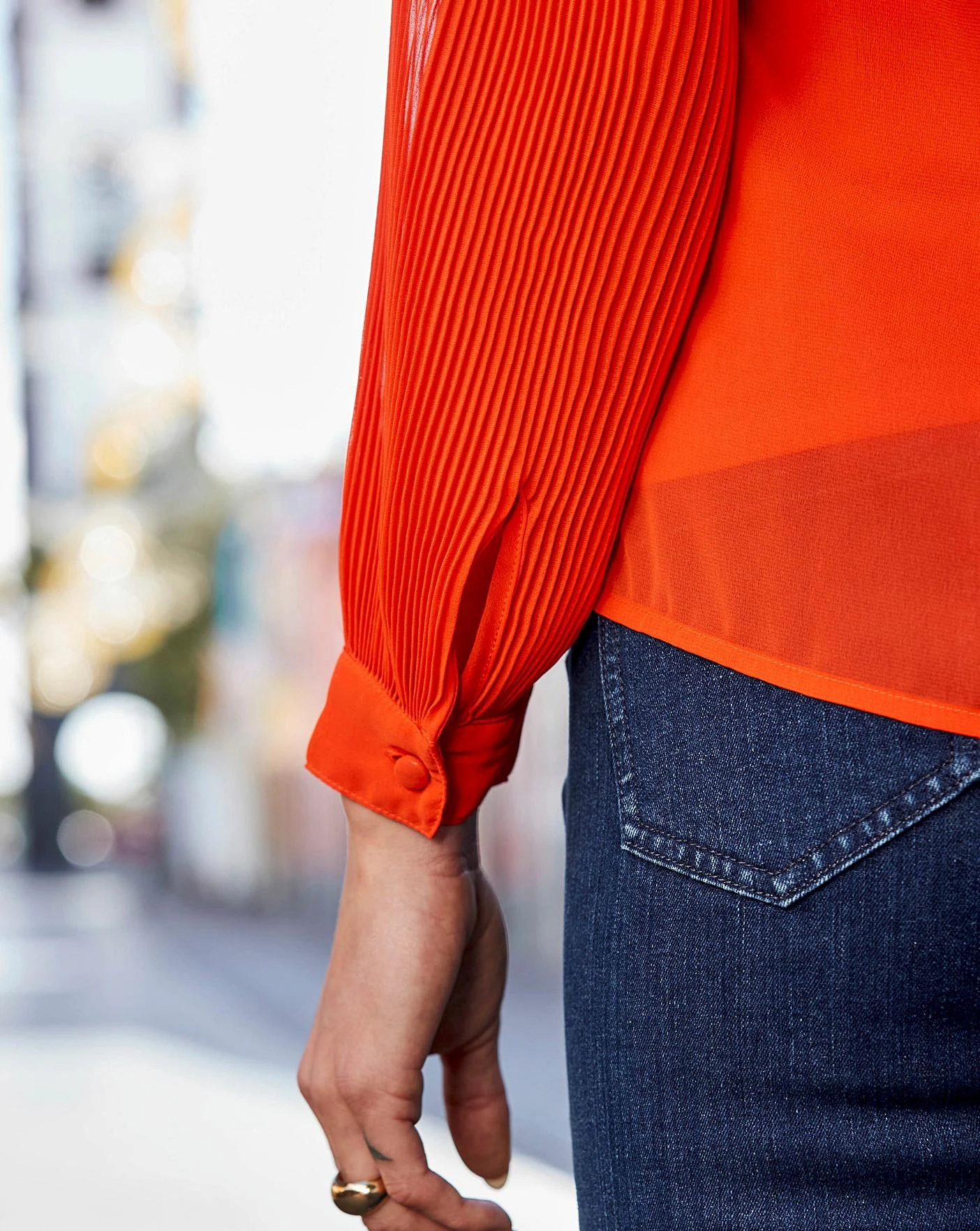This throw on tunic style that has soft and drapey relaxed fit and gorgeous blouson sleeves. This stand out chain printed blouse is perfect outift paired with some denim or leather.