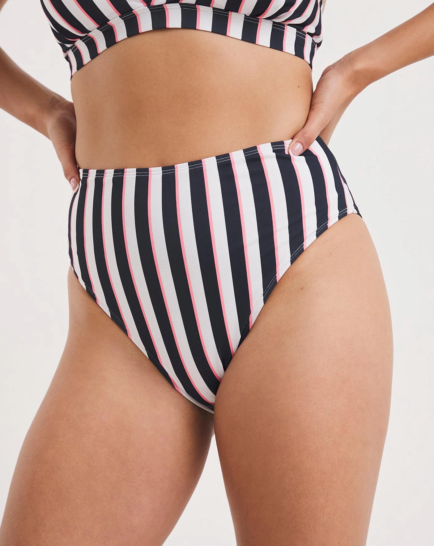 Mix and match with our new value bikini briefs! In a high waisted style, giving the most flattering shape. In a classic stripe print, can be paired with any bikini top to give you multiple options on your next holiday.