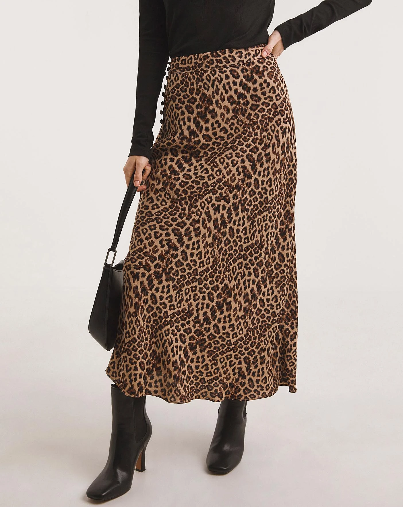 Cut from a fluid, leopard print fabric, this skirt is bold and romantic, perfect for parties. It’s designed with a buttoned up detailand asymmetric hemline for a free spirited appeal. Complete the look with a pair of strappy heels and an understated clutch bag.