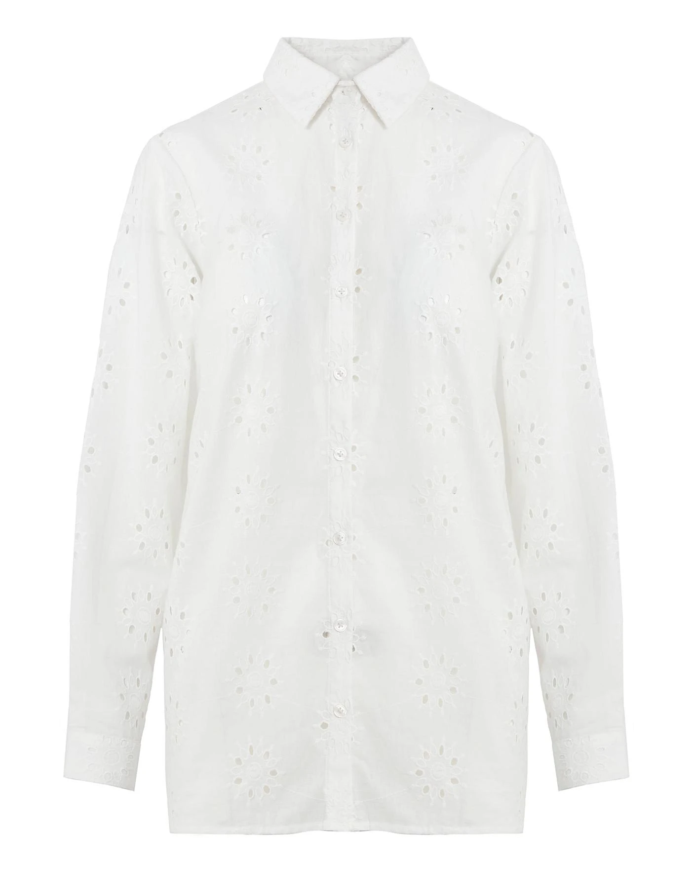 Our broderie shirt is a great day time piece, that can be paired easily with the matching co-ord trousers. This shirt can also be worn with casual jeans or shorts. Please note that this shirt comes in a relaxed fit and is made of a non-stretch fabric.