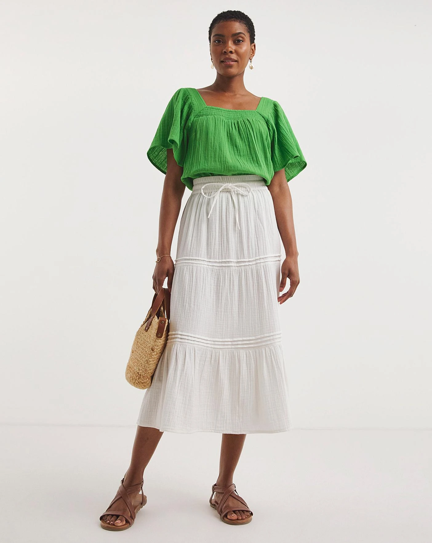 The perfect summer maxi skirt in 100% Cotton. Super breathable and comfortable featuring a pull on elasticated waistband. Try pairing with sandals and your favourite top for the perfect summer look.