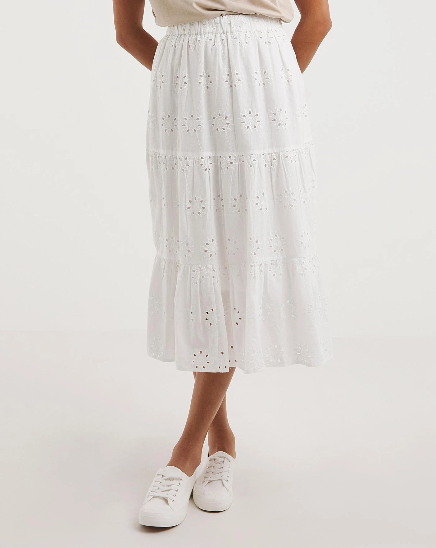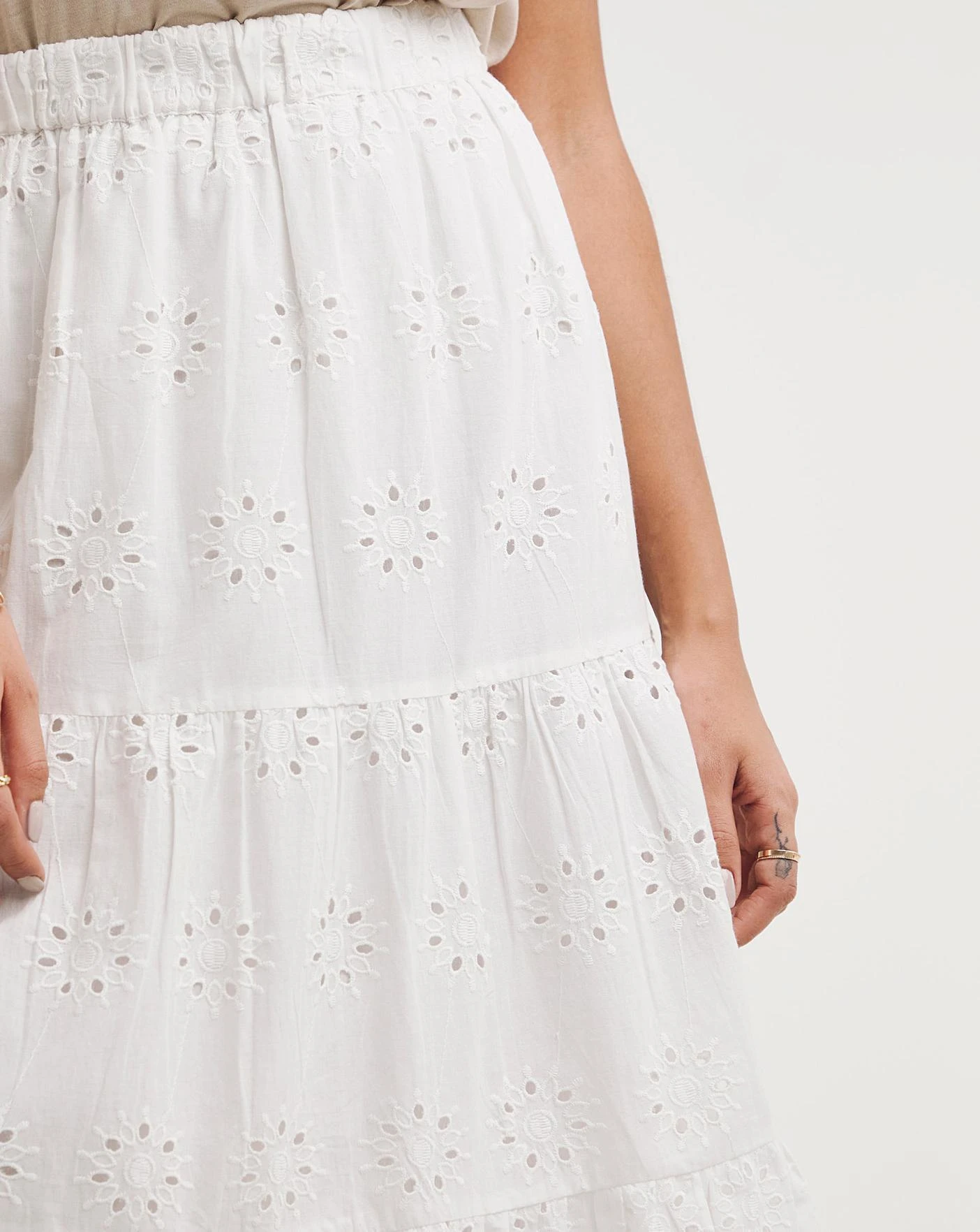 New in, the perfect Spring/Summer maxi skirt in a super breathable cotton fabric. Try pairing with the Broderie Shirt and some sandals for a classic summer co ord.